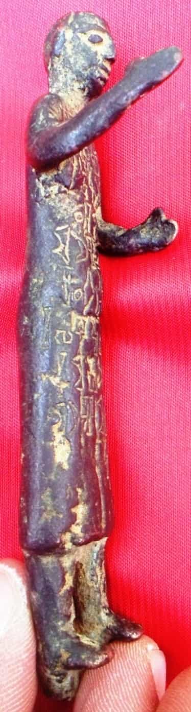 - القياسات: مقاسات التمثال: الطول 11 سم × العرض ما بين 1.2- 3 سم، مقاسات النقش: الارتفاع 5.7 سم × العرض 1.6 سم تقريبًا، وطول الحرف: ما بين 5 - 7 ملم.