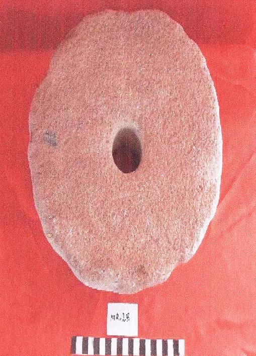 قطعه من الحجر الجيري مستديرة الشكل عباره عن رحاء , واجهته مسطحه وفي وسطها ثقب نافذ ,خلفيتها مقعره وبها فتحتين احداها عميقه نسبيا .