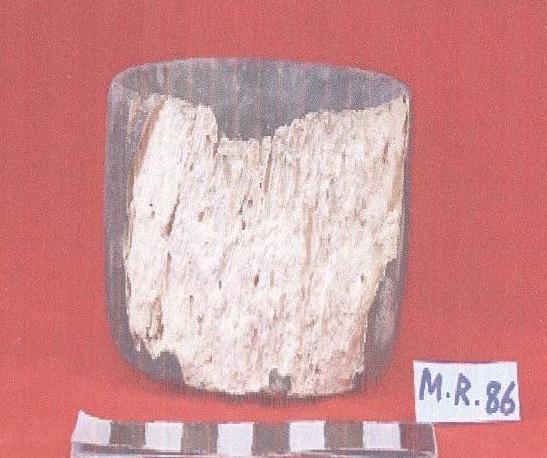 قطعه من الخشب عباره عن انيه اسطوانية الشكل خاليه من الزخارف على جزء من البدن تاكل شديد ادت الى تلف جزء منها .