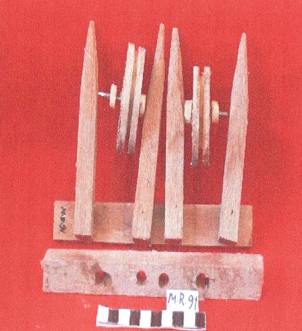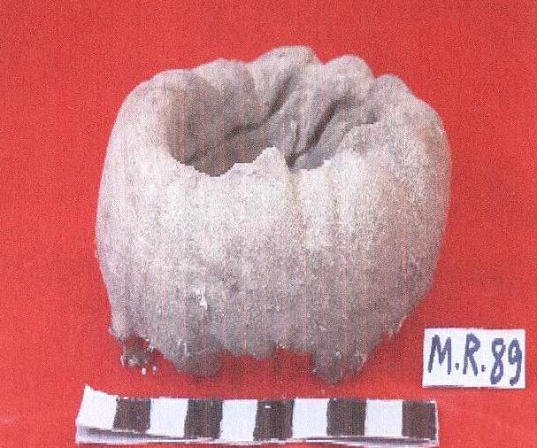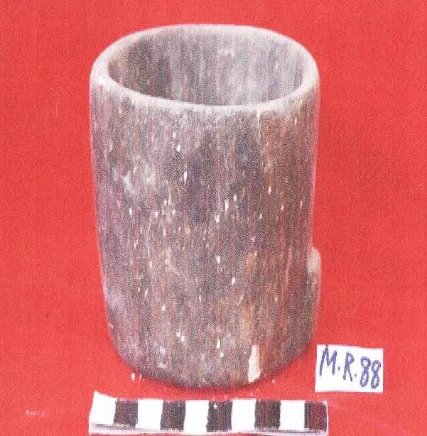 طعه من الخشب عباره عن انيه اسطوانية الشكل لها قاعده مسطحه من نفس البدن ,اسفل البدن بروز ,البدن خالي من الزخارف .