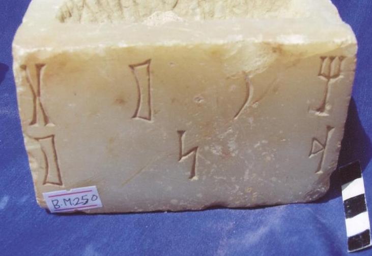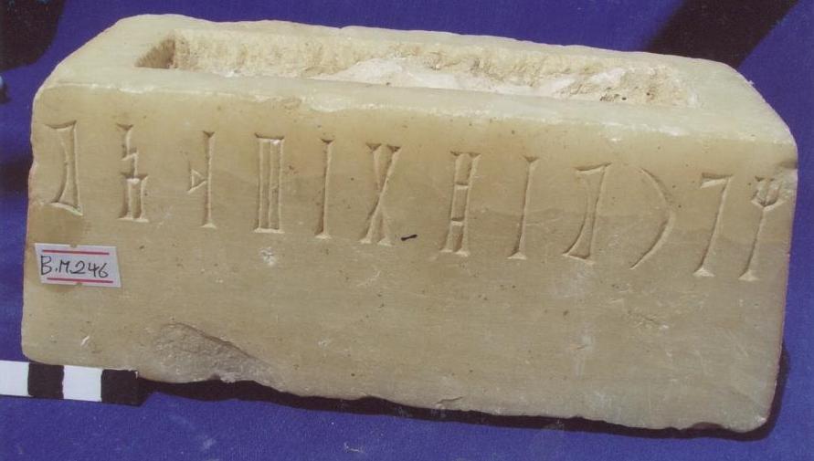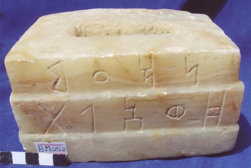 قطعة عبارة عن قاعدة ذات اربعة اوجه الجوانب والامام مصقولة الخلف غير مهذب،على الواجهة الامامية سطرين بخط المسند