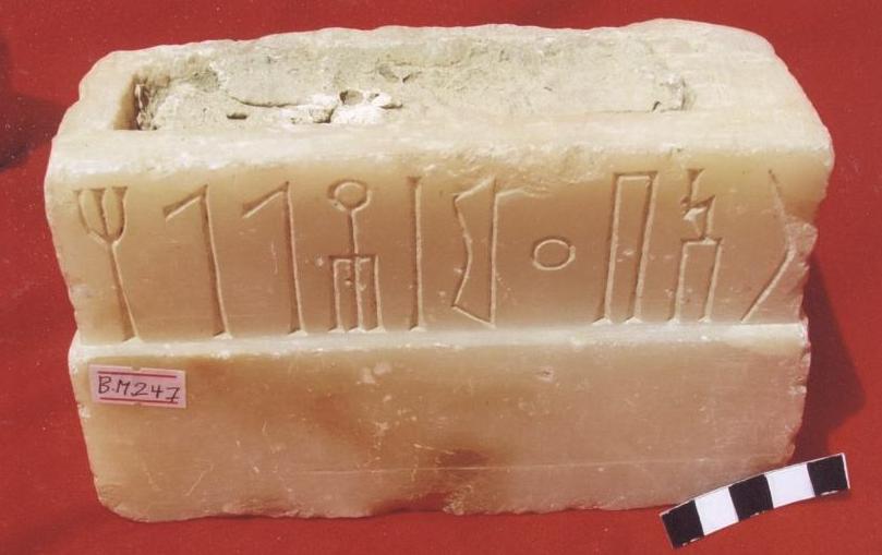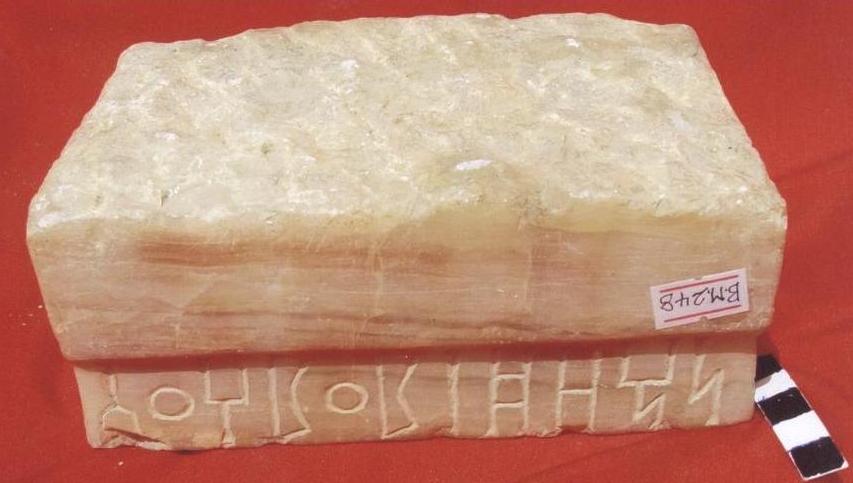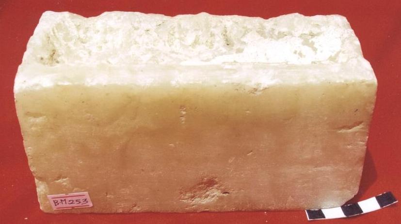 قطعة عبارة عن قاعدة مدرجة بمستويين ذات اربعة اوجة الجوانب والامام مصقولة ،الخلف غير مهذب .