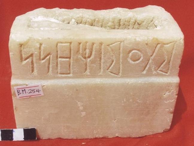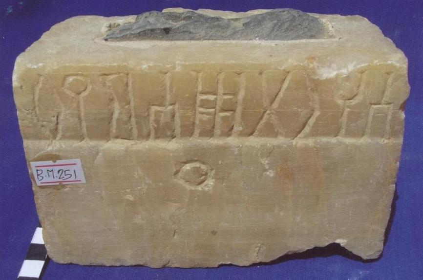 قطعة عبارة عن قاعدة مدرجة ذات ثلاثة مستويات الجوانب والامام مصقولة الخلف غير مهذب ،على الواجهة الامامية سطرين بخط المسند