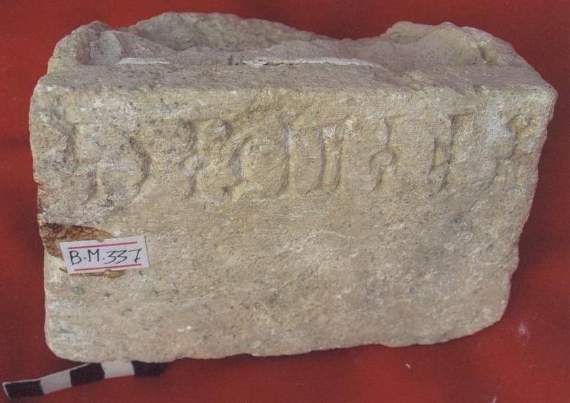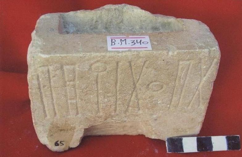 سطح القطعة محفورة عليها بقايا جصية ارتفاع الحرف 2,5سم