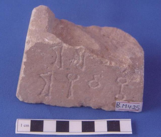 قطعة من الحجر الرخام عبارة عن نقش مكون من سبعة اسطر بخط المسند الغائر ,القطعة مكسورة من الجانب الايمن من اعلى حتى اسفل كسر مقصود وكذلك من الاعلى كسر بسيط