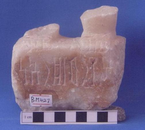 قطعة من الحجر الرخام عبارة عن قاعدة تمثال شبة مربعة ذات اربعة وجوه,على واجهتها الامامية نقش بخط المسند الغائر مكون من سطر واحد نصه .