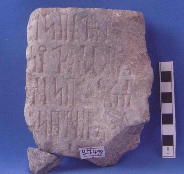 قطعة من حجر الرخام عبارة عن نقش مستطيل الشكل مكون من اربعة اسطر بالخط الغائر بداية السطر الاول والثاني مشطوف وكذلك بداية السطر الرابع وعلى السطر الثالث شطف في المنتصف