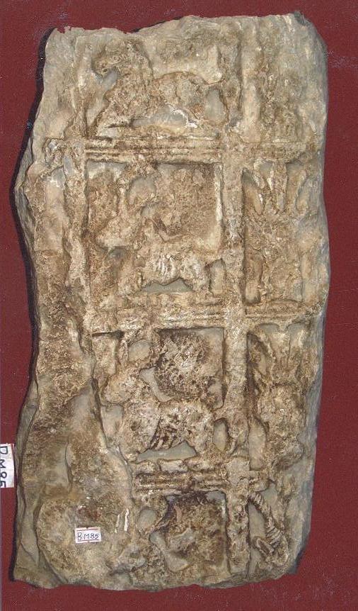 قطعه من الحجر الجيري مستطيلة الشكل ،على الواجهه الاماميه للقطعه شريطين كل شريط مقسم الى مربعات ،الشريط الاول بداخله رسوم لوعول بداخل مربعات وجيهها تعرضت للتهشم لم يبقى منها الا بقايا للقرون والاذان ،الشريط الثاني قسم ايضاً الى مربعات بداخل كل مربع وعل رابض بوضع جانبي ،الوعل الرابع مكسور ومفقود من منتصف الظهر والارجل والايدي ،على بعض من هذه الوعول تهشمات بسيطه ،القطعه مكسوره من الجوانب ومفقوده .