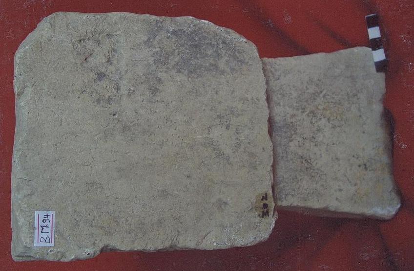 قطعه من الحجر الجيري مستطيلة الشكل واجهتها مسطحه على الواجهه سطر بخط المسند