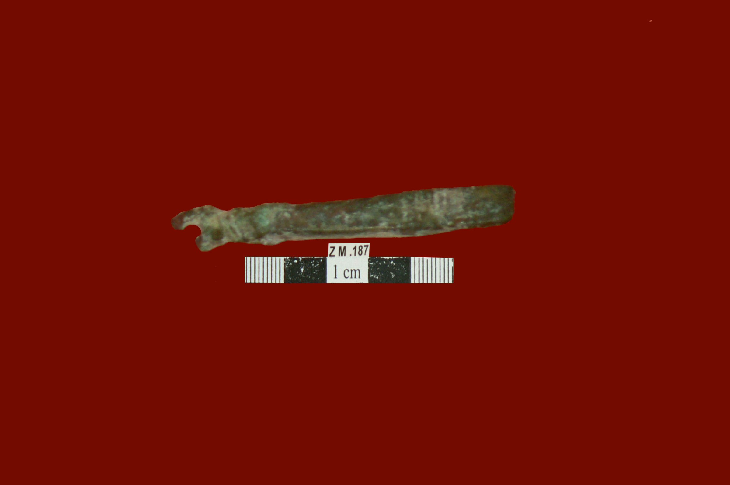 قطعه من البرونز عباره عن ميل على احد طرفيه كسر مفقود ادي الى وجود بروزان .