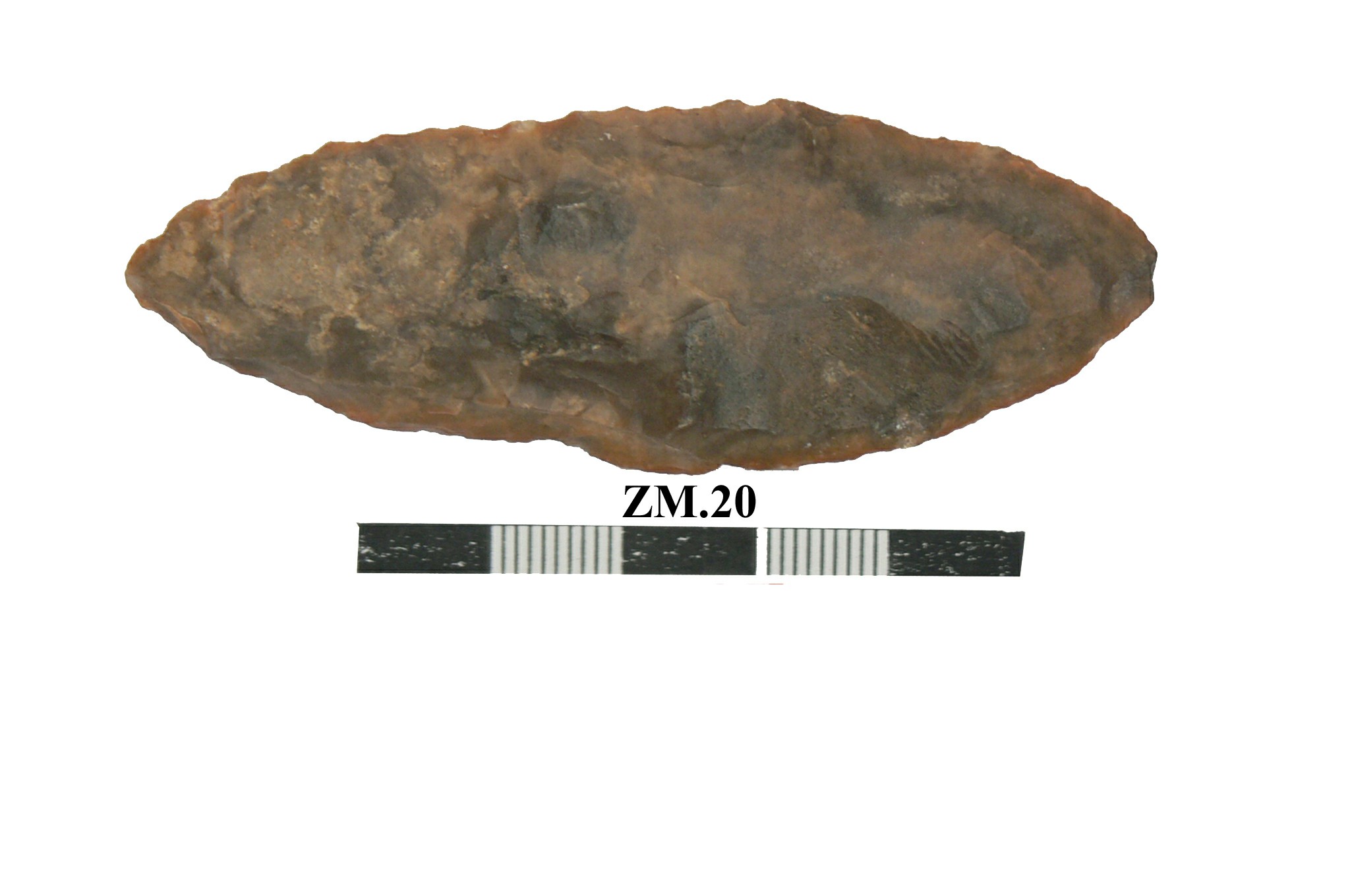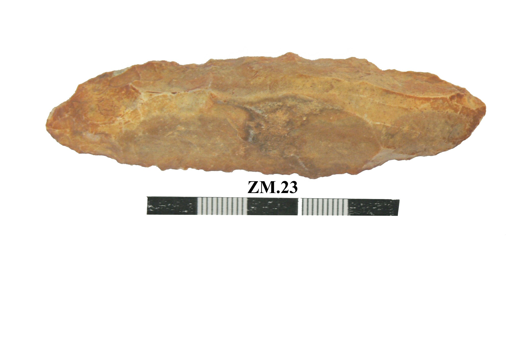 قطعه من حجر الصوان عباره عن مقشطه حوافها مسننه .تتسع من احد الاطراف وتضيق تدريجيا حتى الطرف الاخر نهايتها حاده .