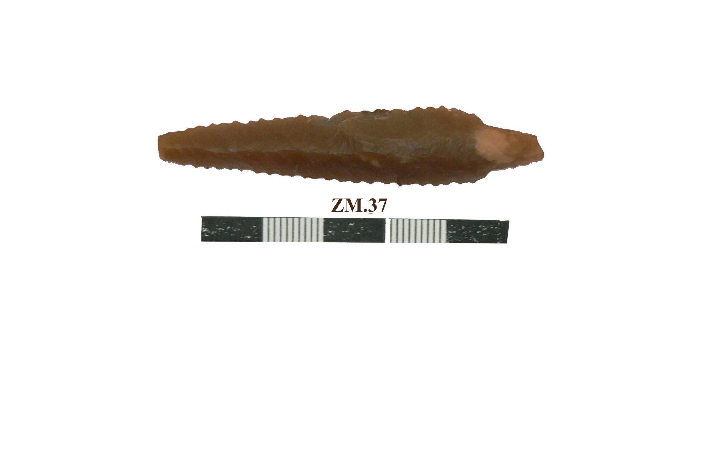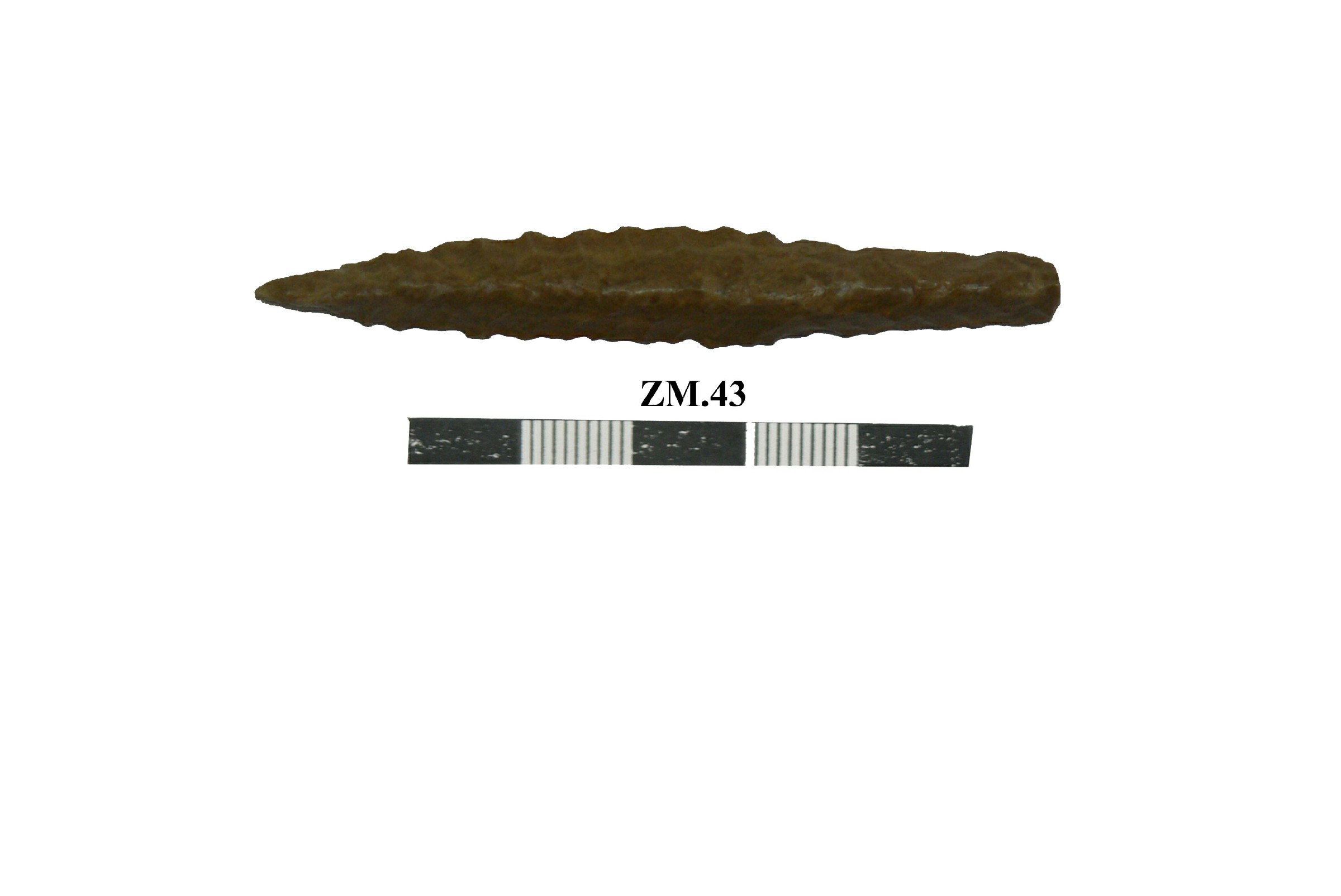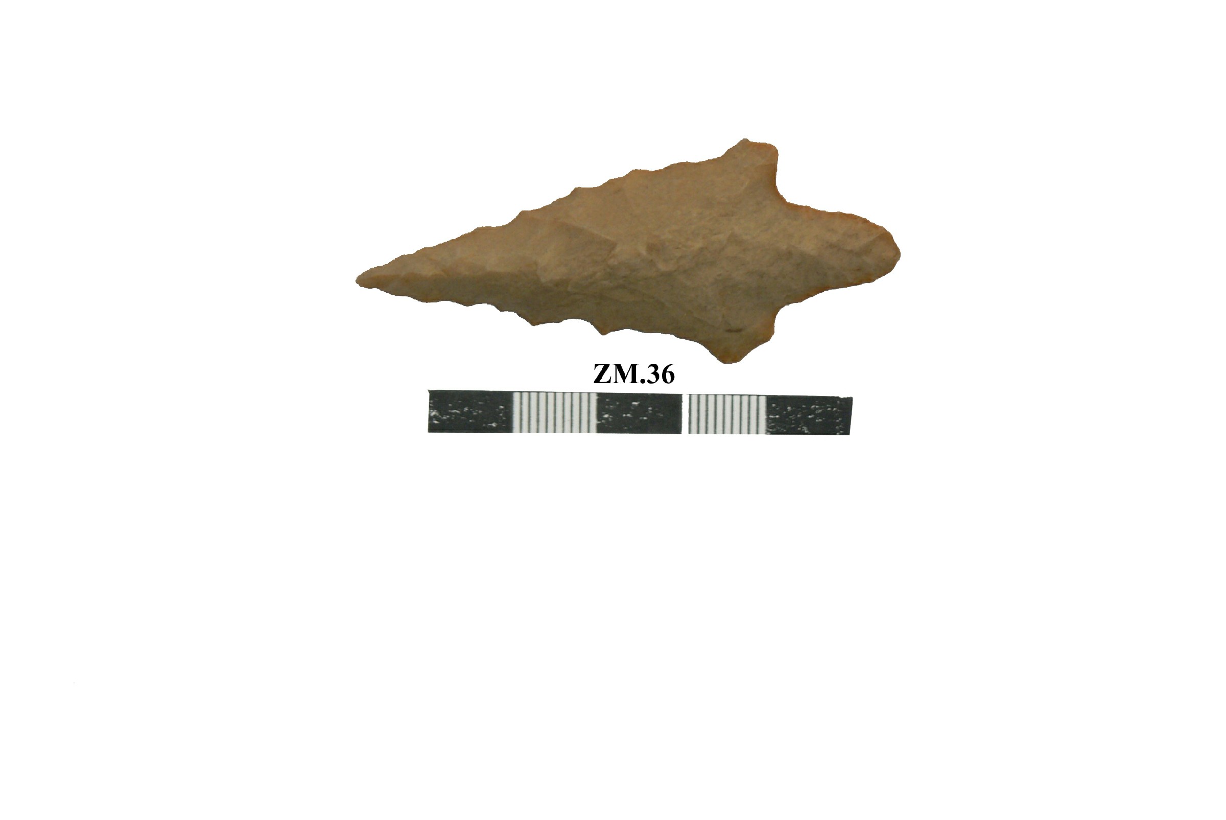 قطعه من حجر الصوان عباره عن سهم مصقول جوانبه مسننه احد اطرافه مدببه.