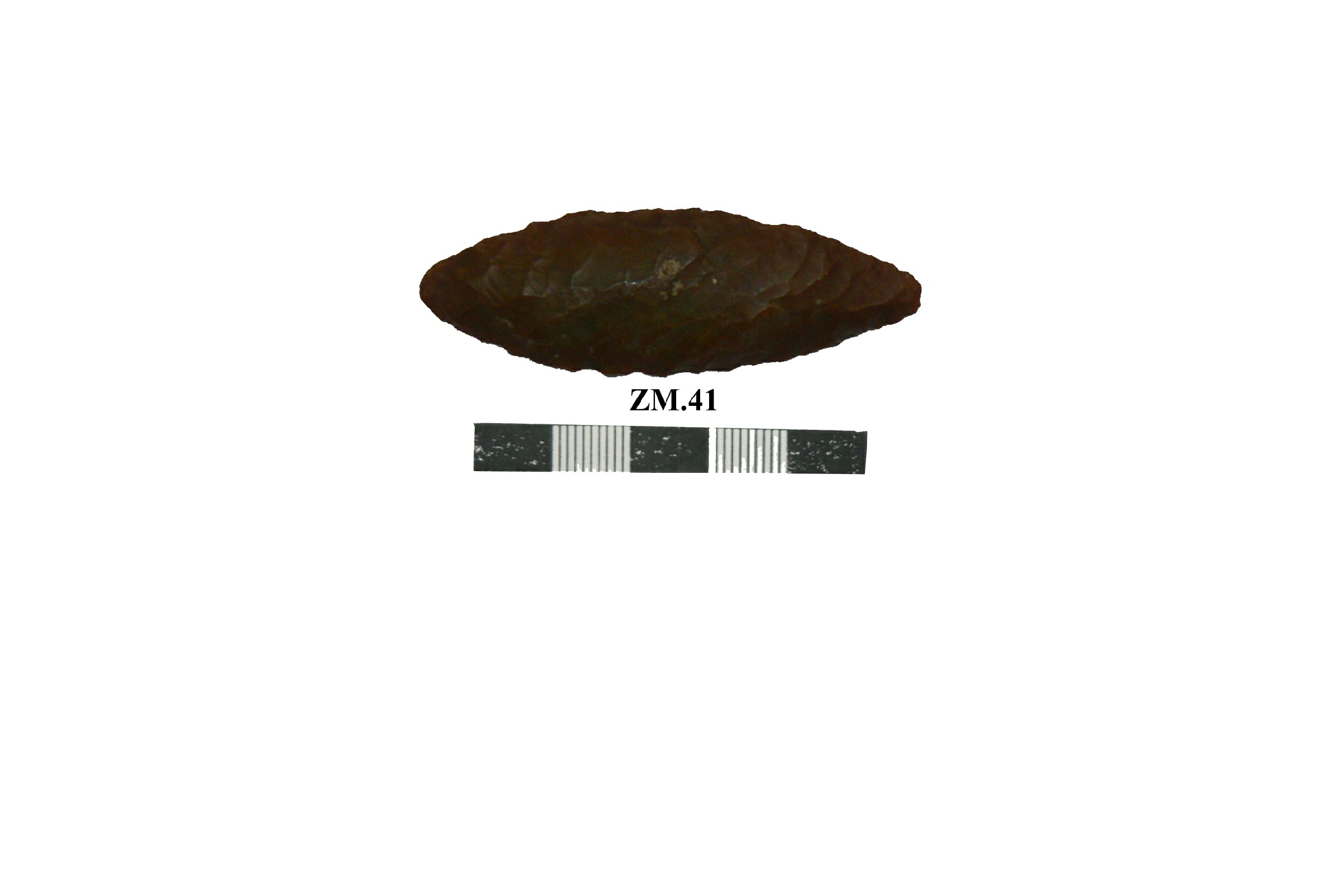 قطعه من حجر الصوان عباره عن سهم مصقول طرفه الامامي مدبب وحاد‘ الوجه الاسفل مسطح .
