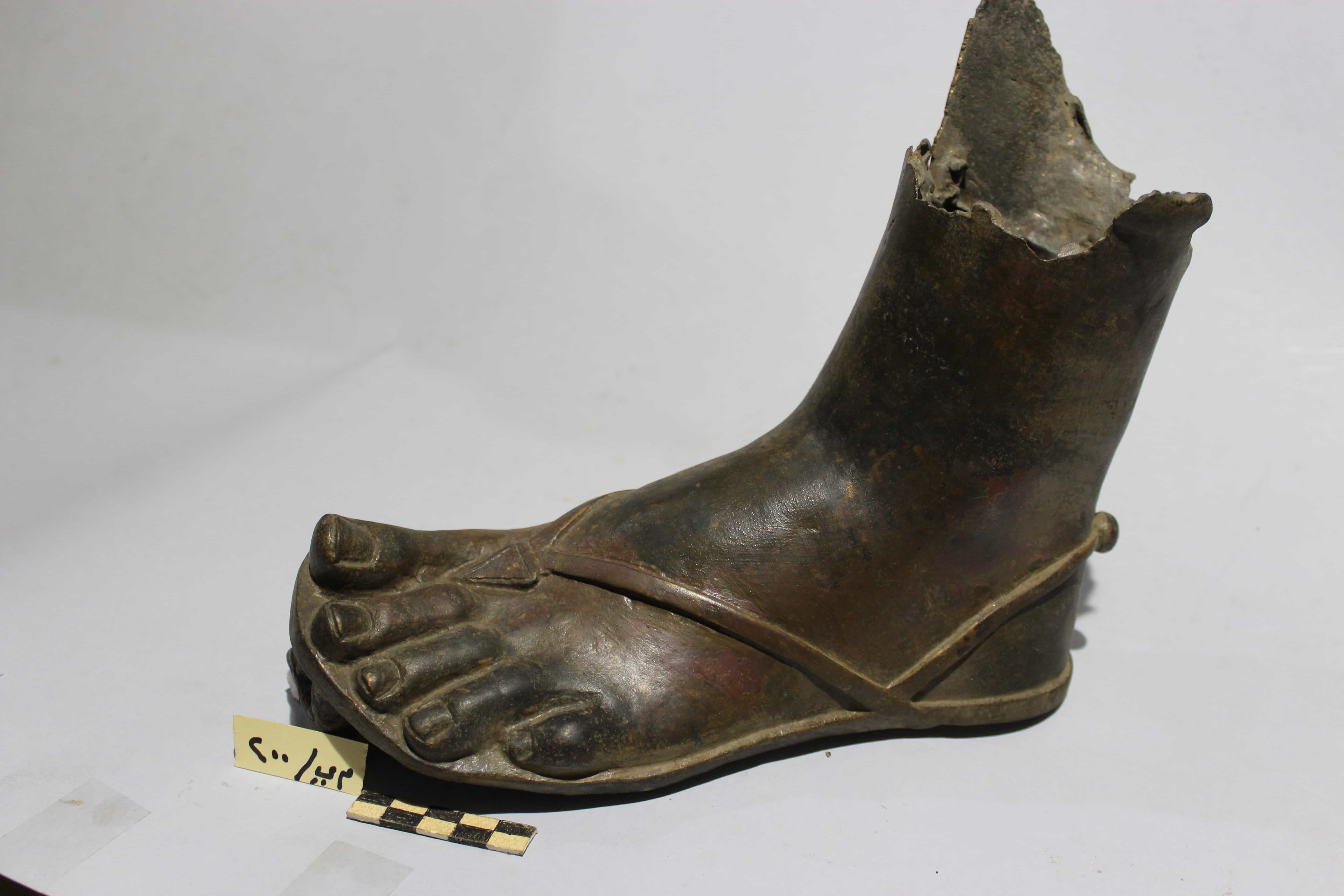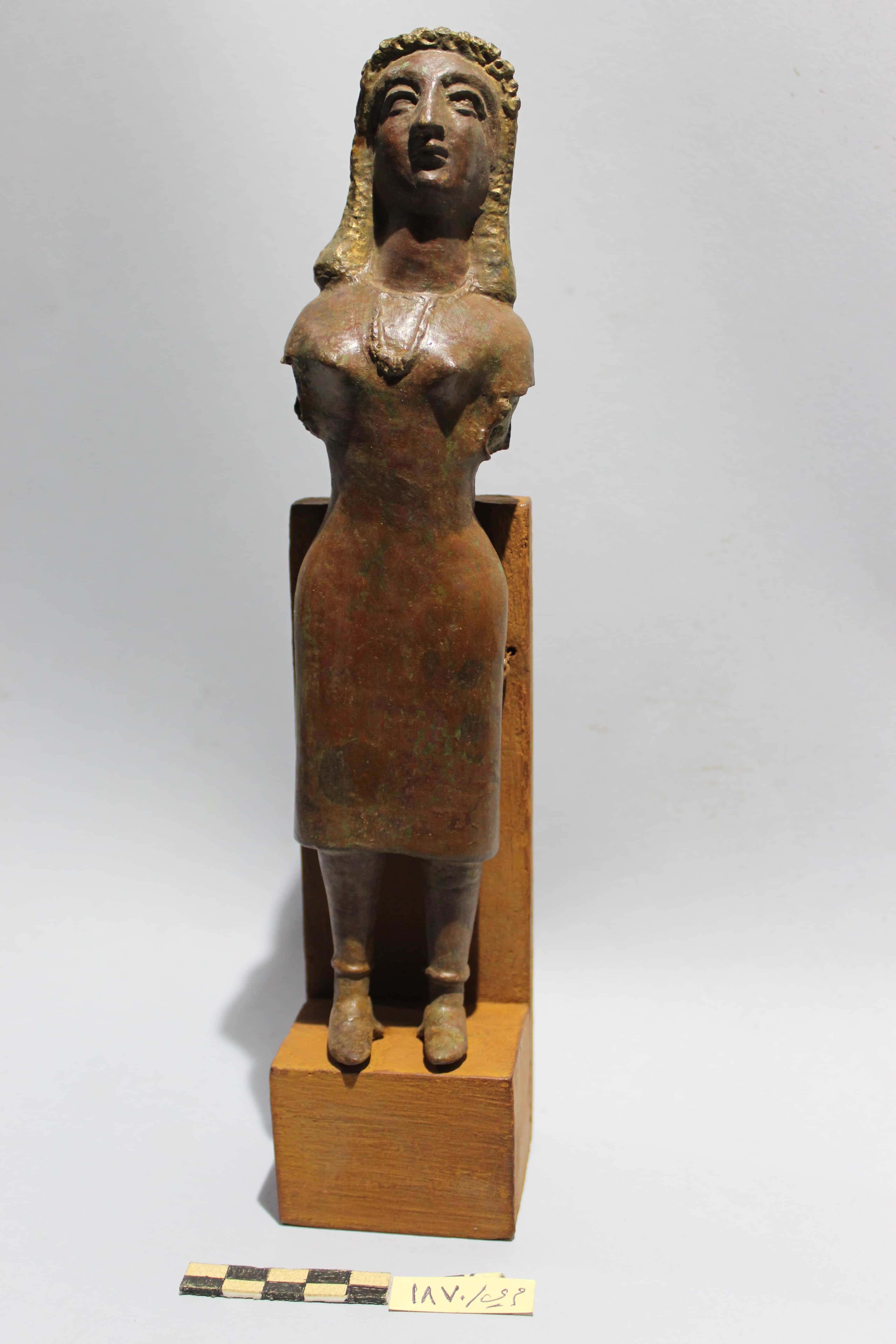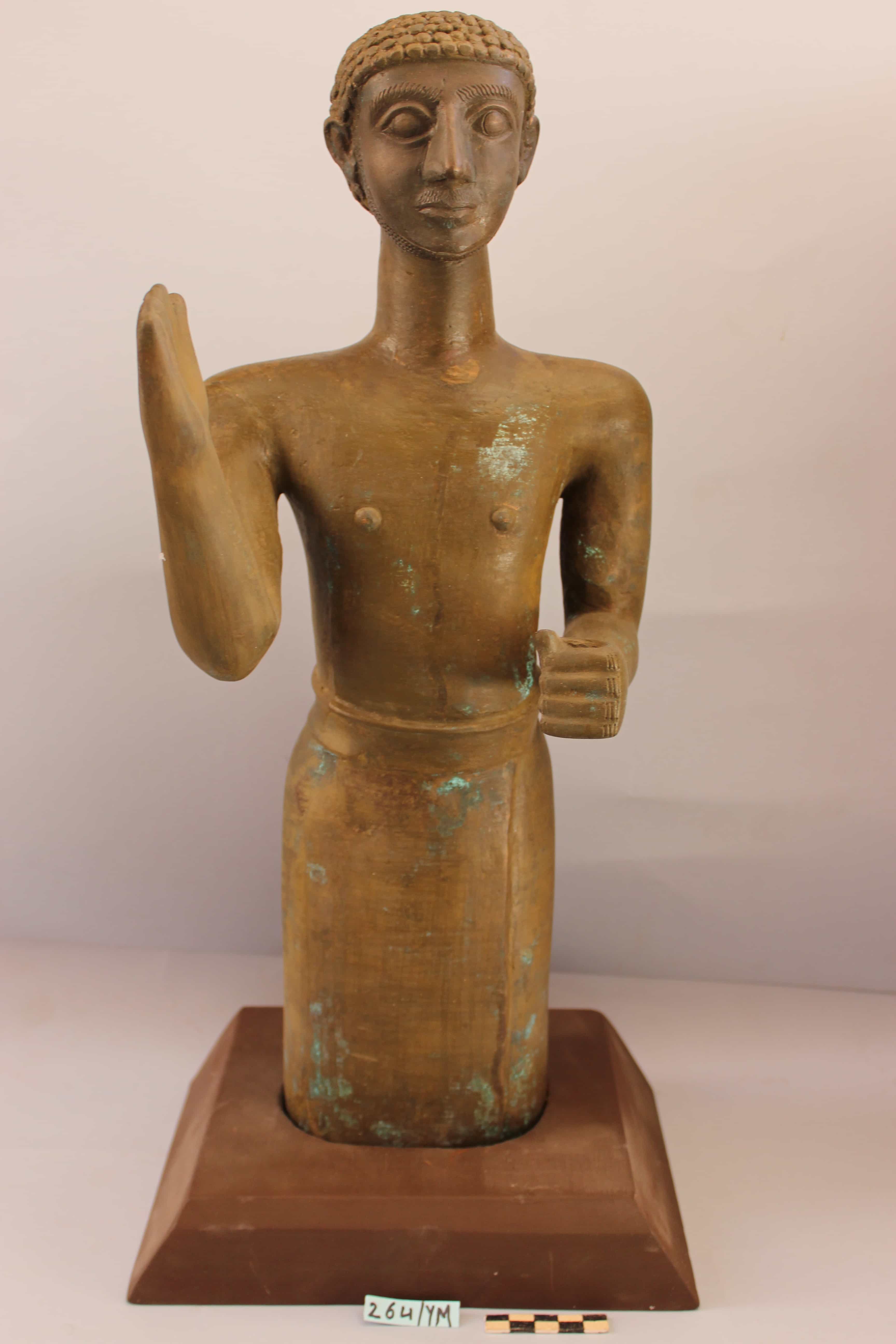 تمثال من البرونز لآدمي واقف الأرجل مكسورة ومفقودة