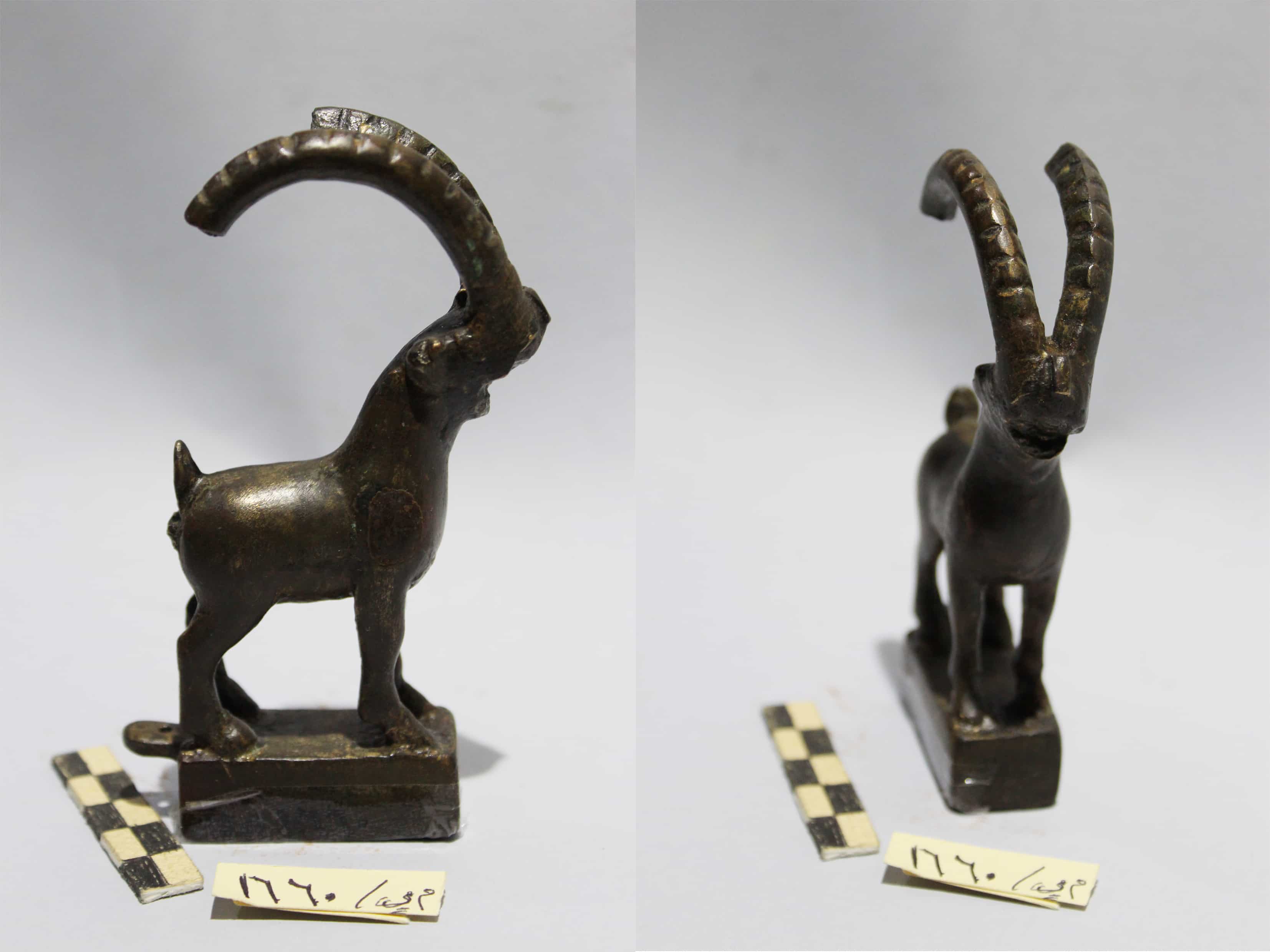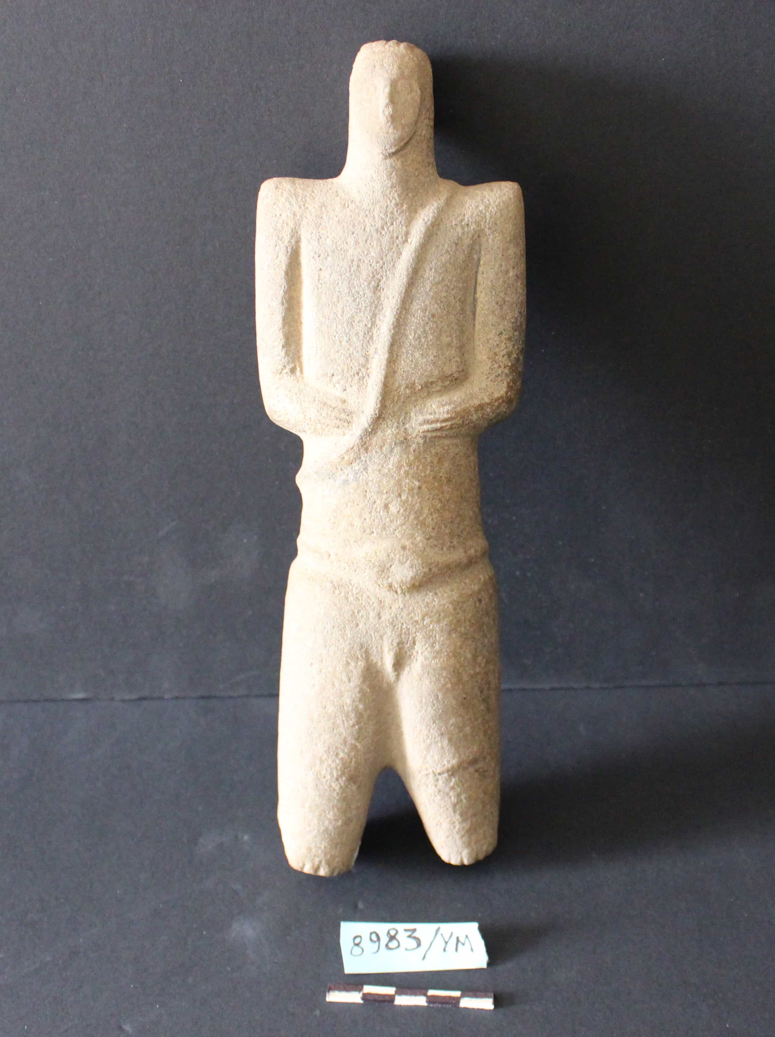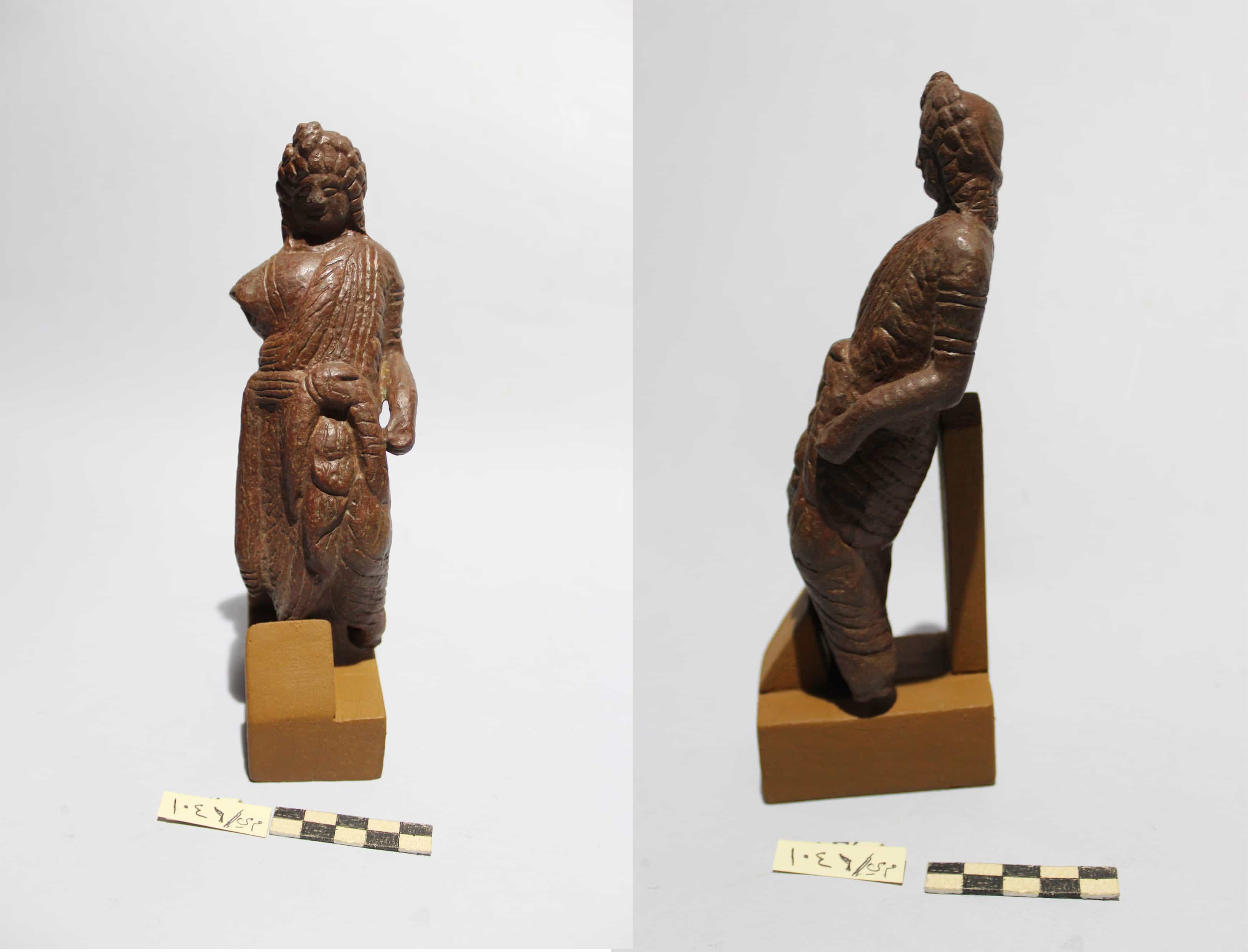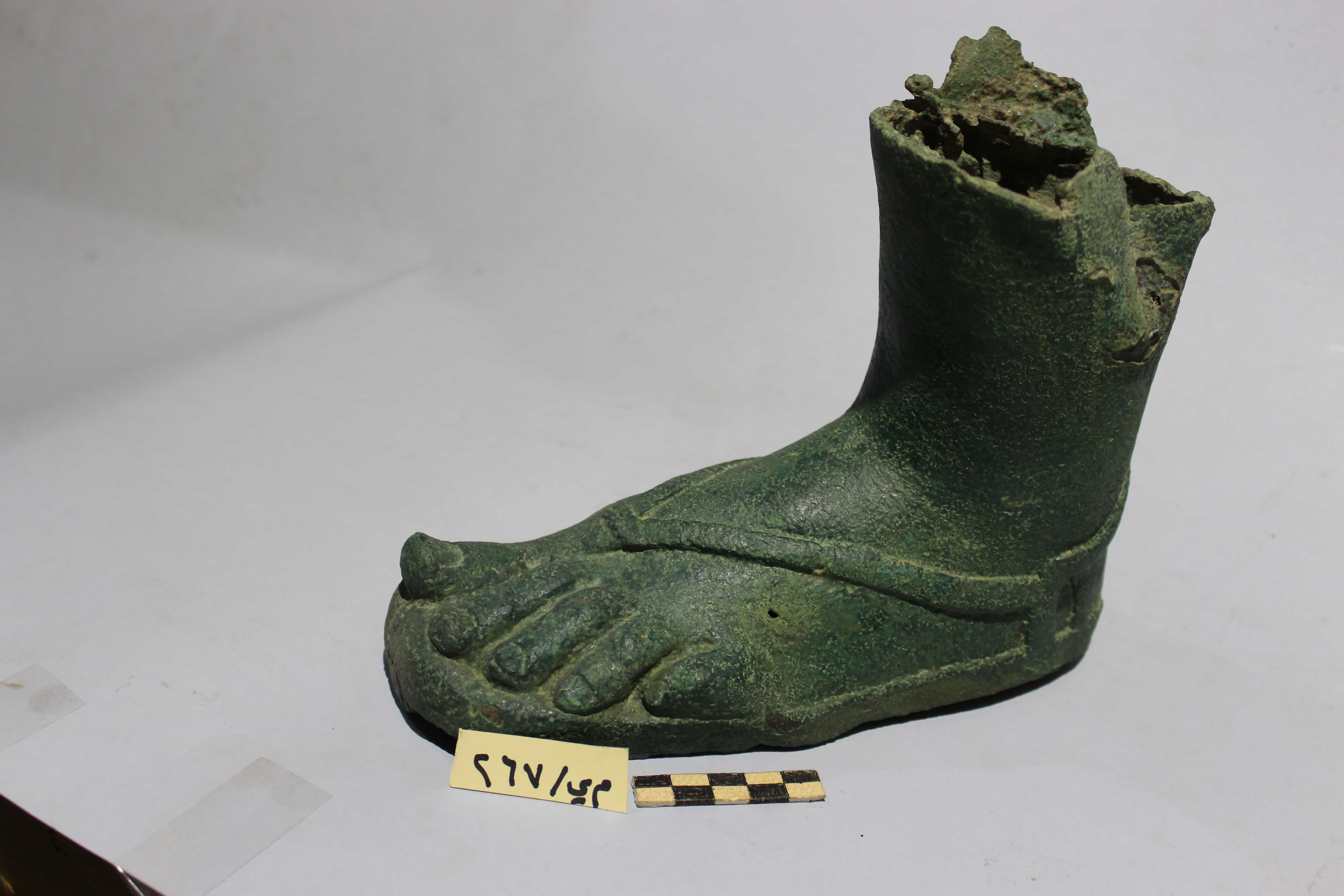 تمثال من البرونز لآدمي واقف الأرجل مكسورة ومفقودة