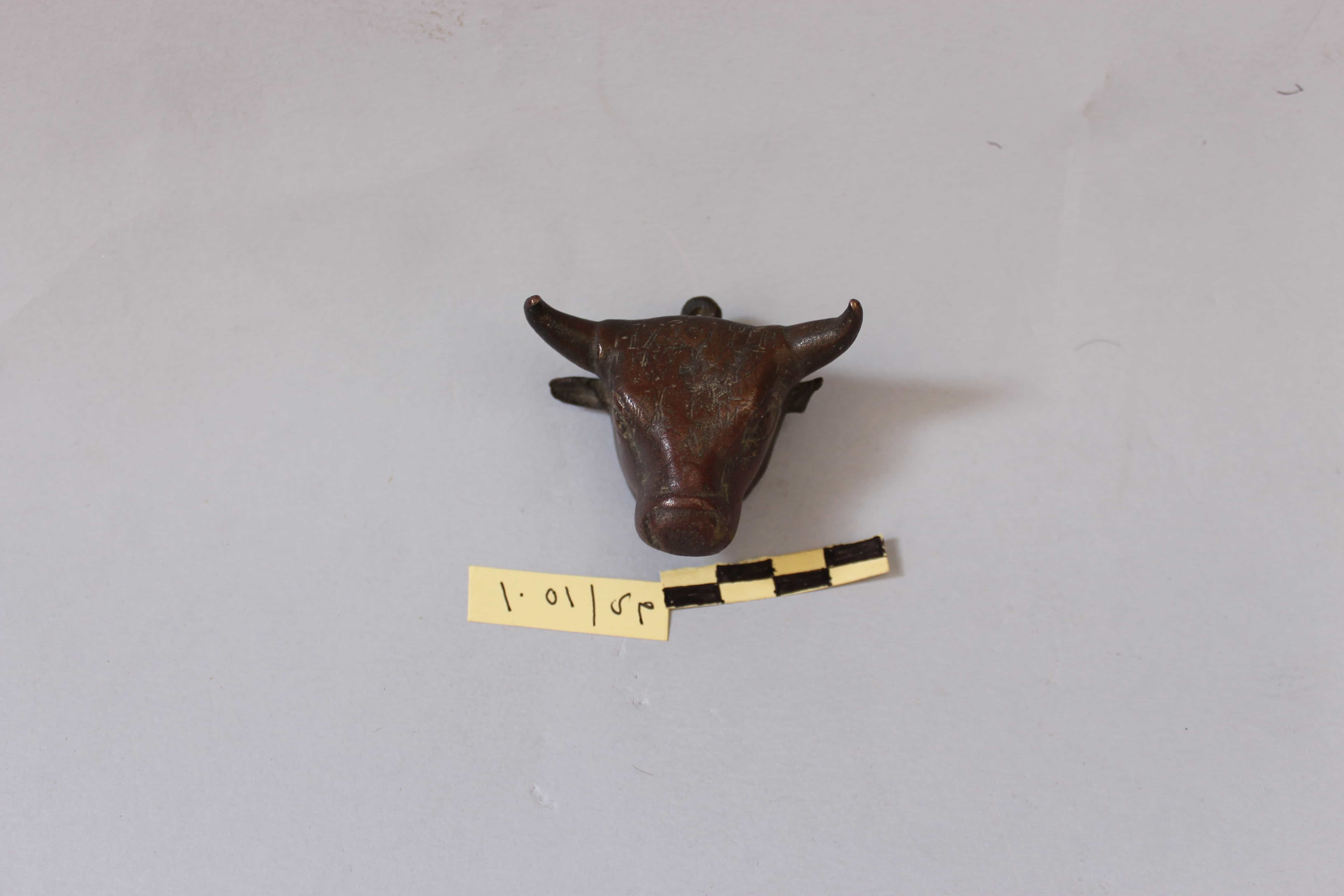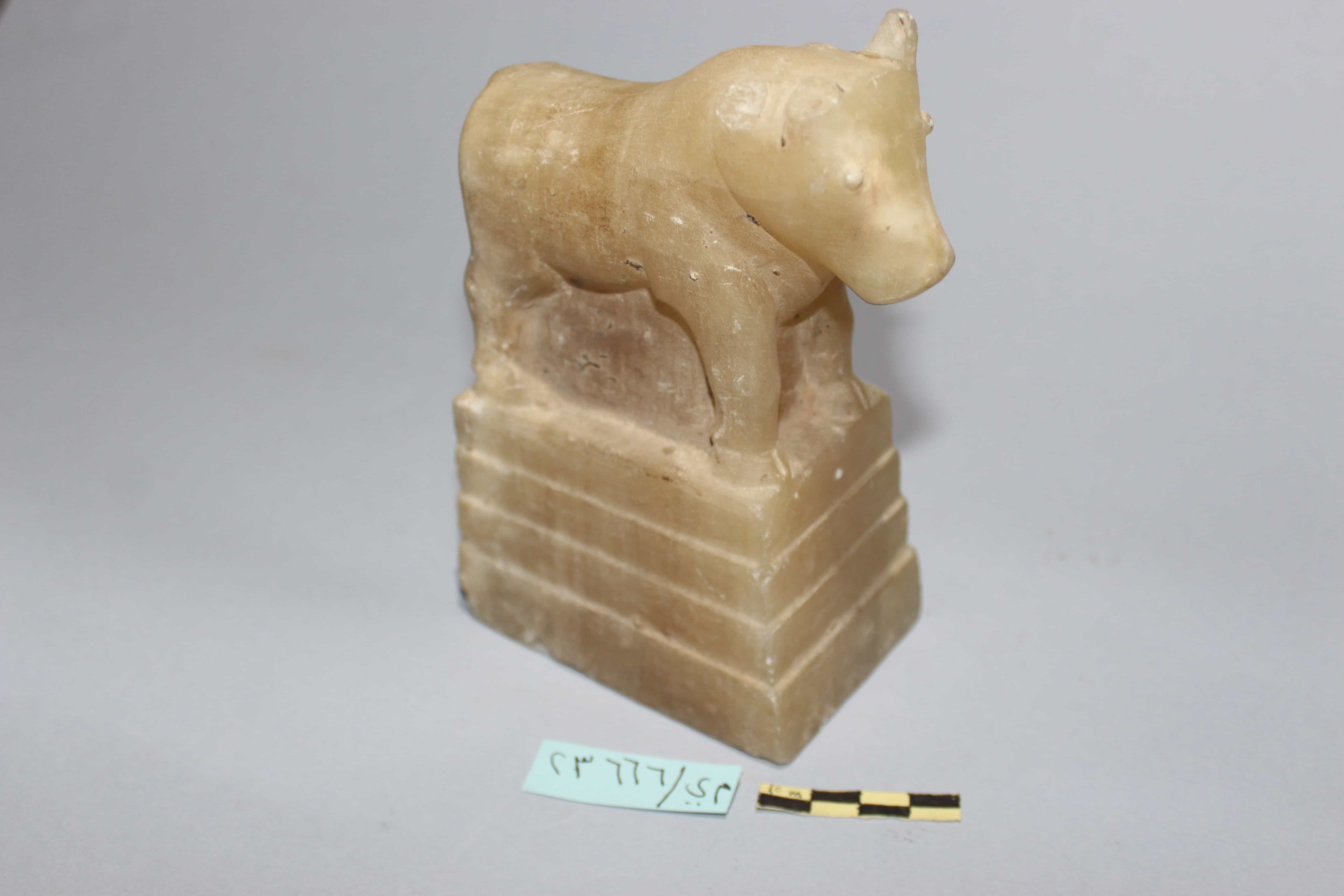 تمثال لثُور واقف على قاعدة مُدرجة من الرخام