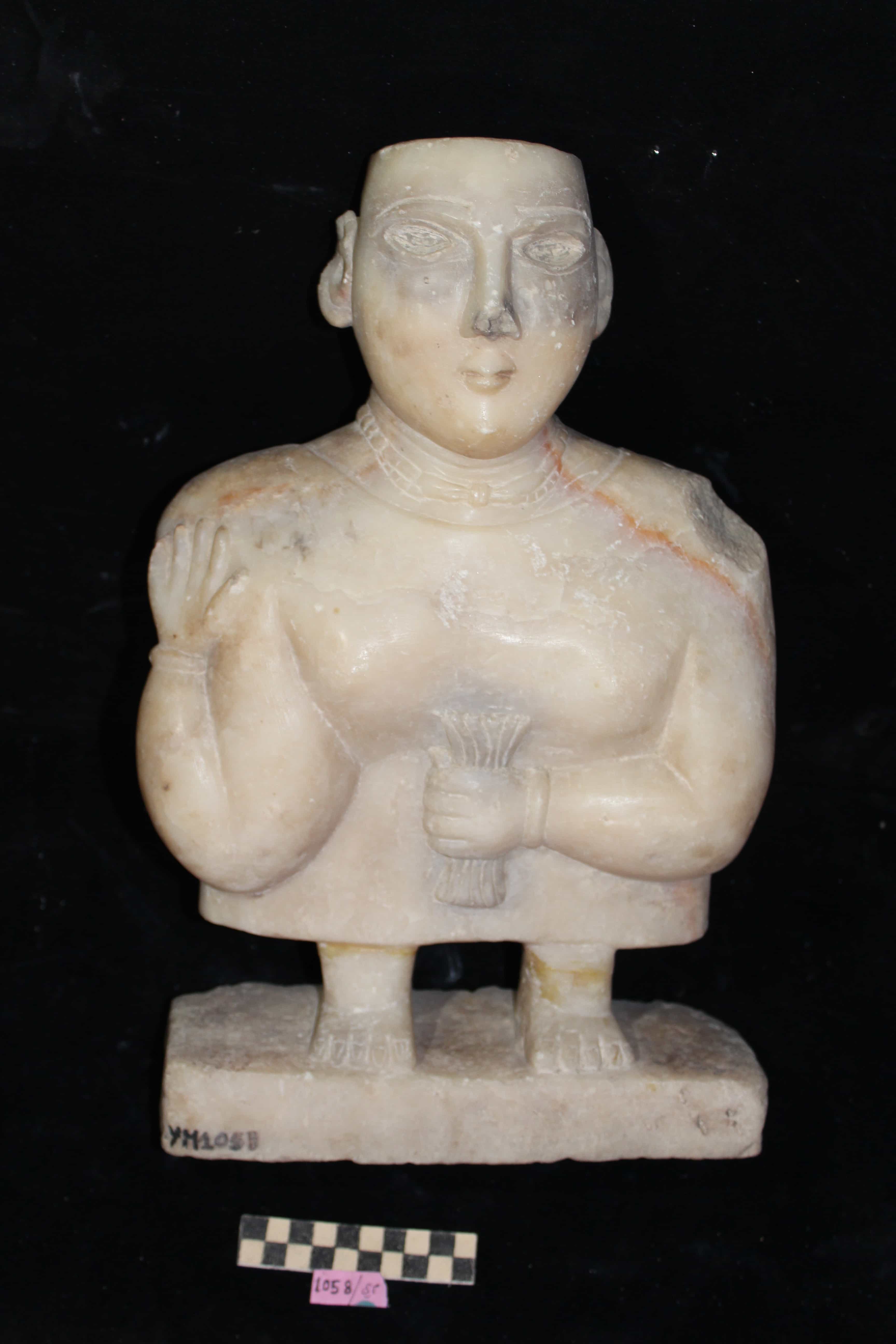 تمثال من الرخام لآدمي واقف يمسك سنبلة