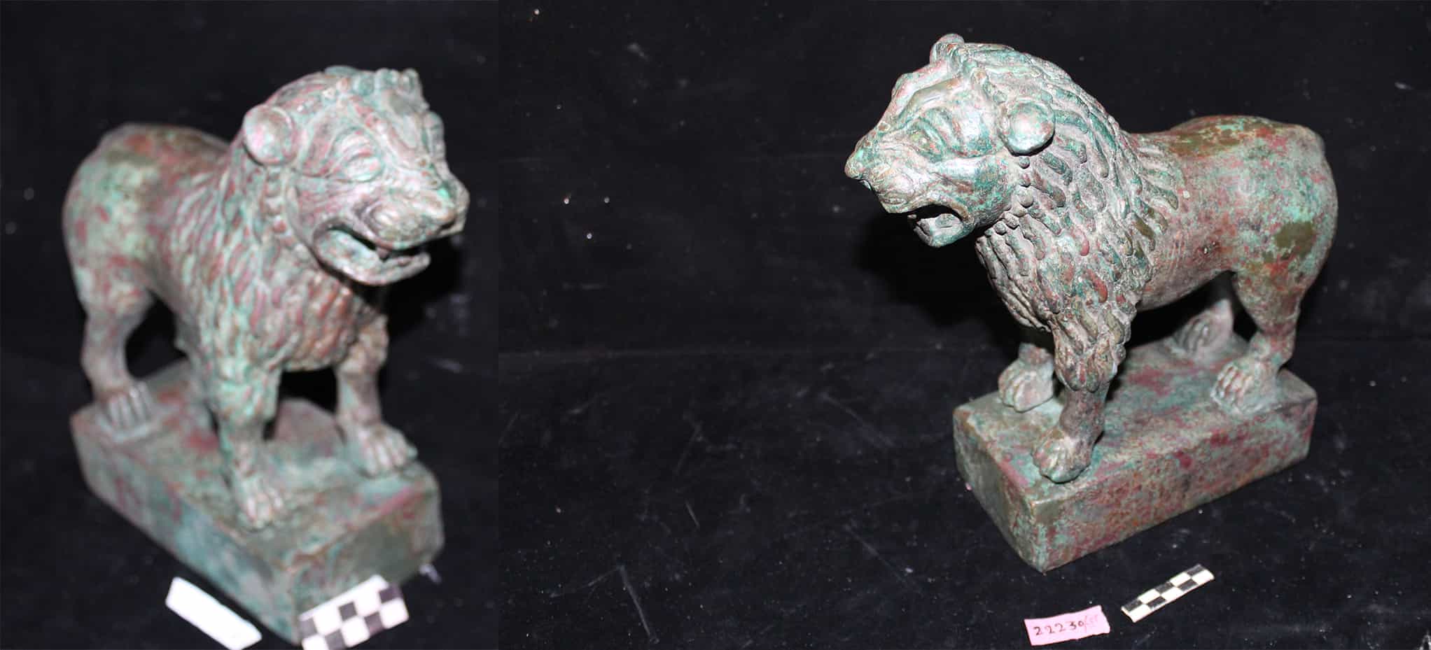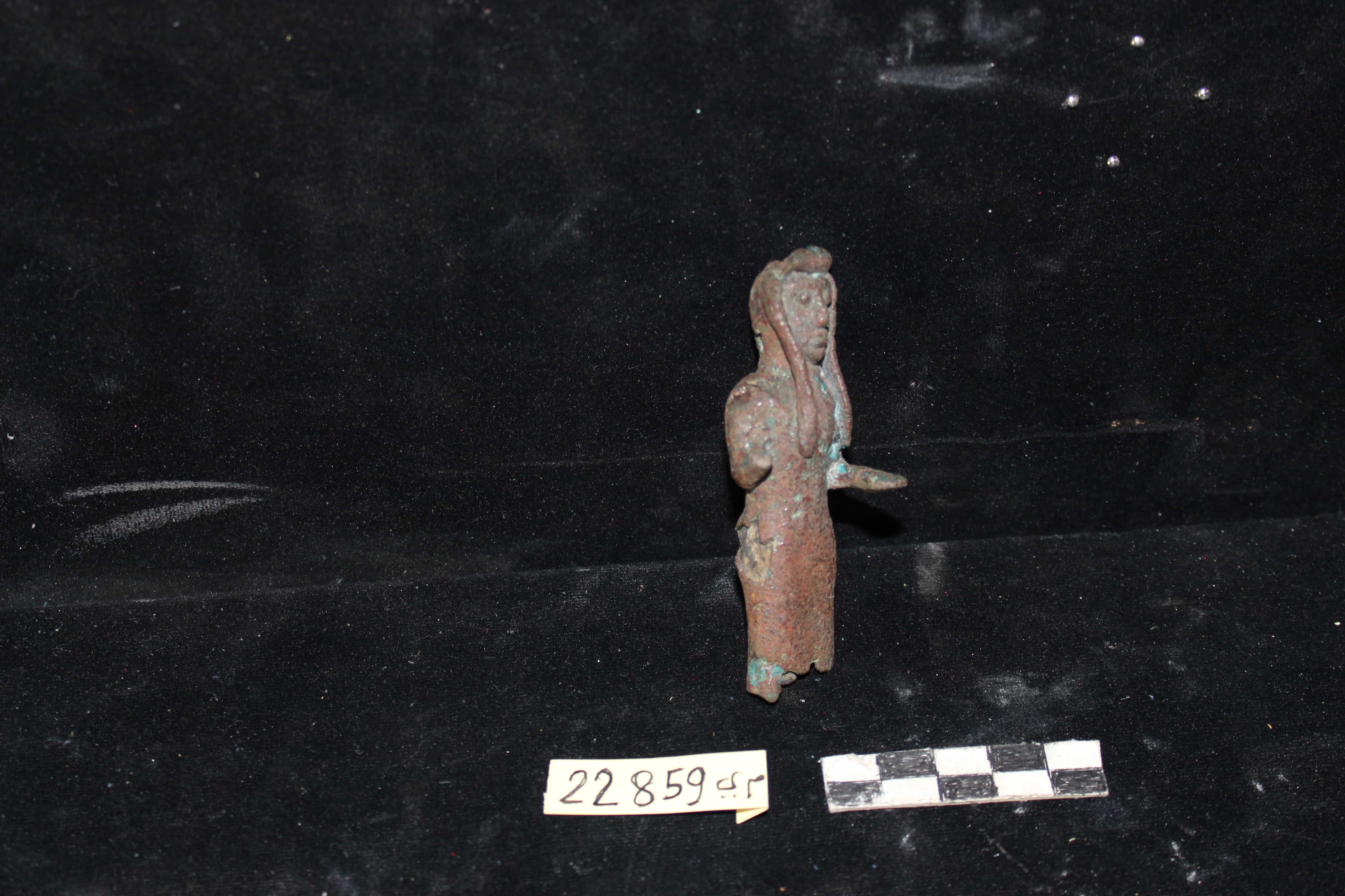 تمثال من البرونز لآدمي واقف، الأرجل مكسورة ومفقودة