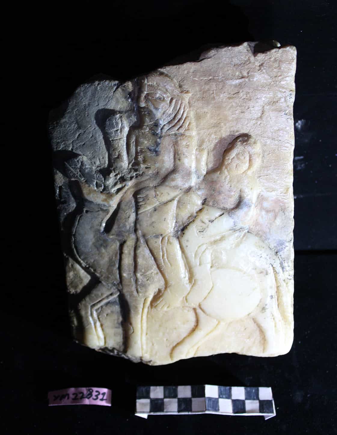 لوحة من الرخام عليها نحت لحيوان خرافي