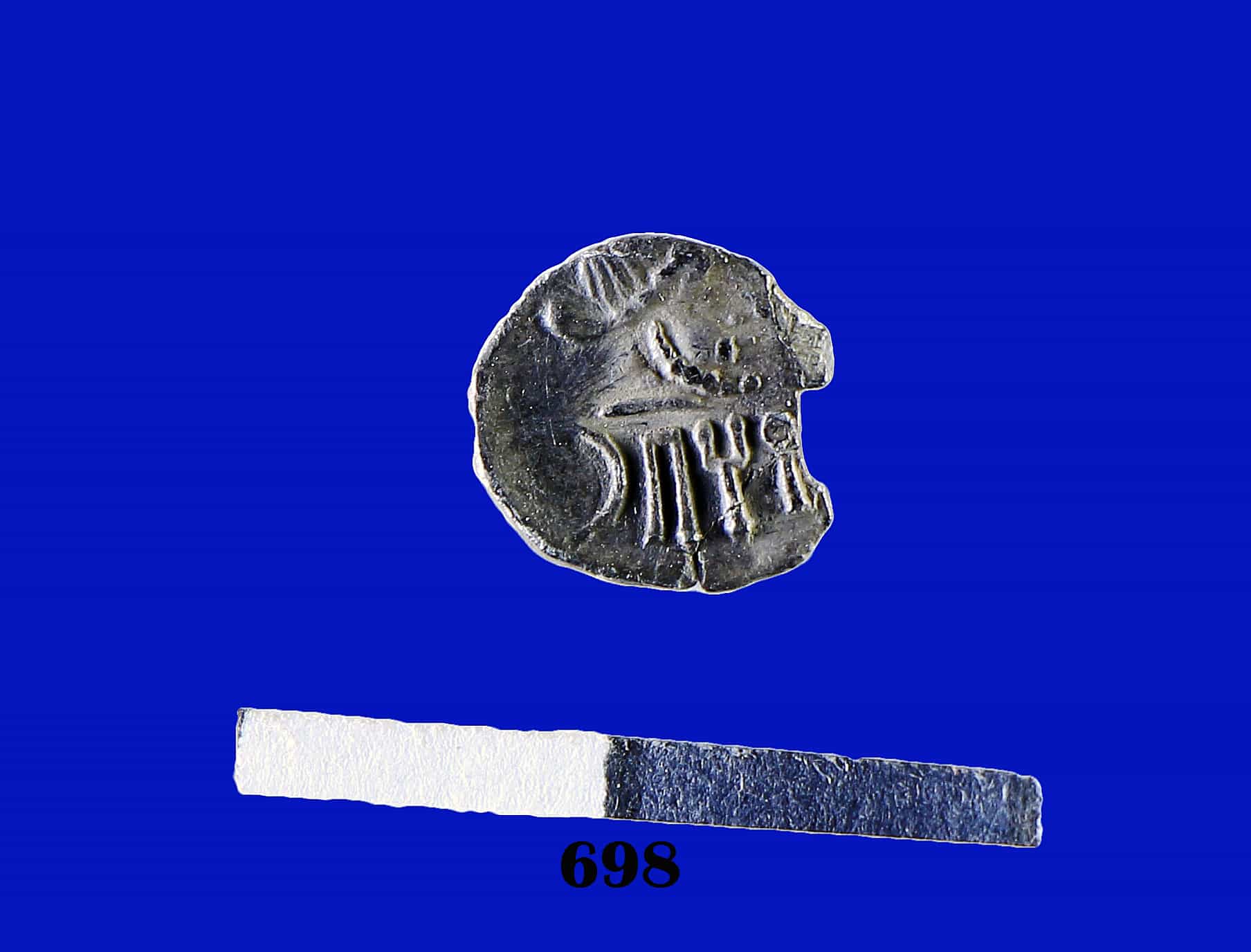 عملة صغيرة على الوجه الأول وجه الملك والوجه الثاني كتابة بالمسند