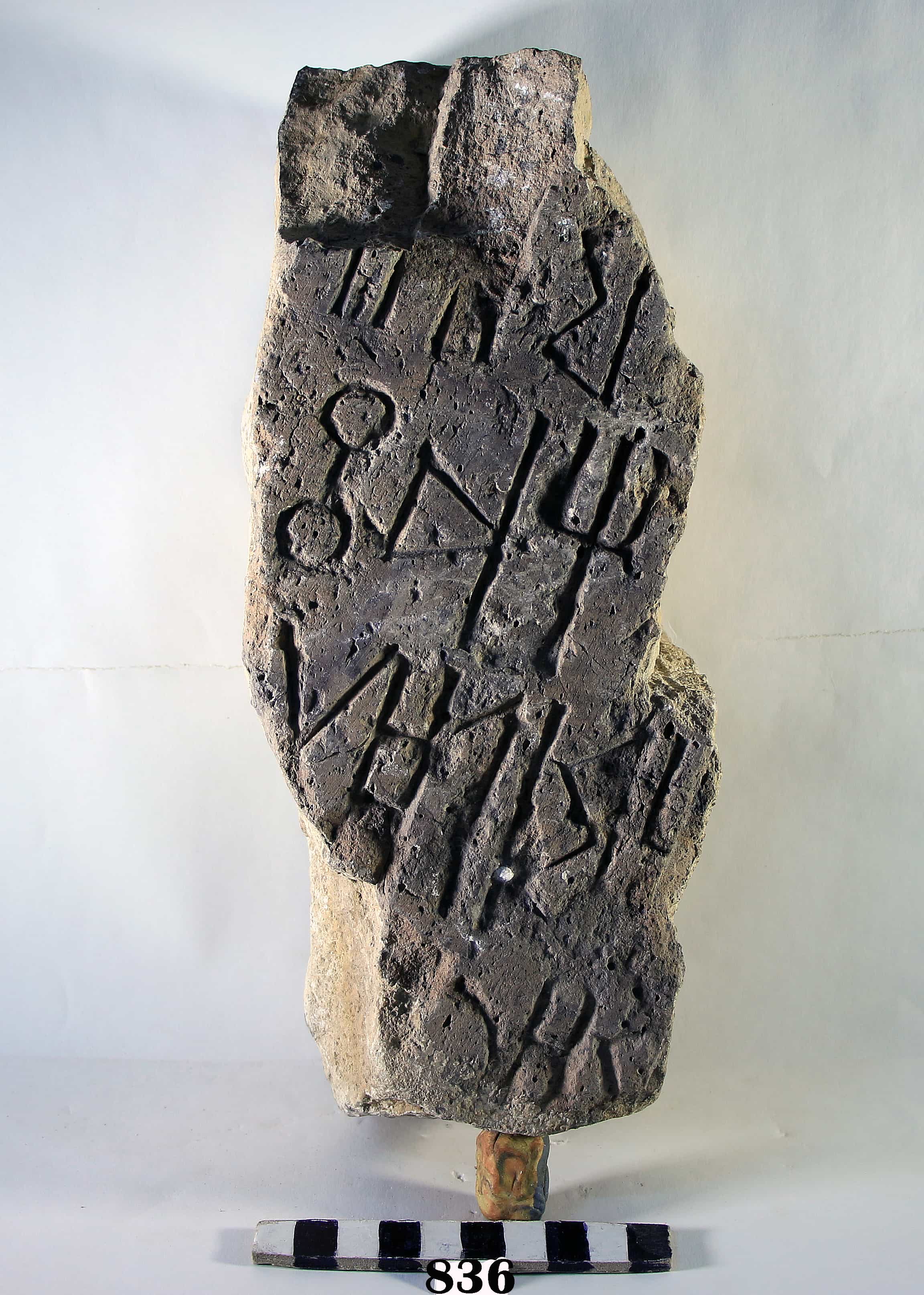 قطعه على واجهتها كتابه بخط المسند مكون من سته اسطر