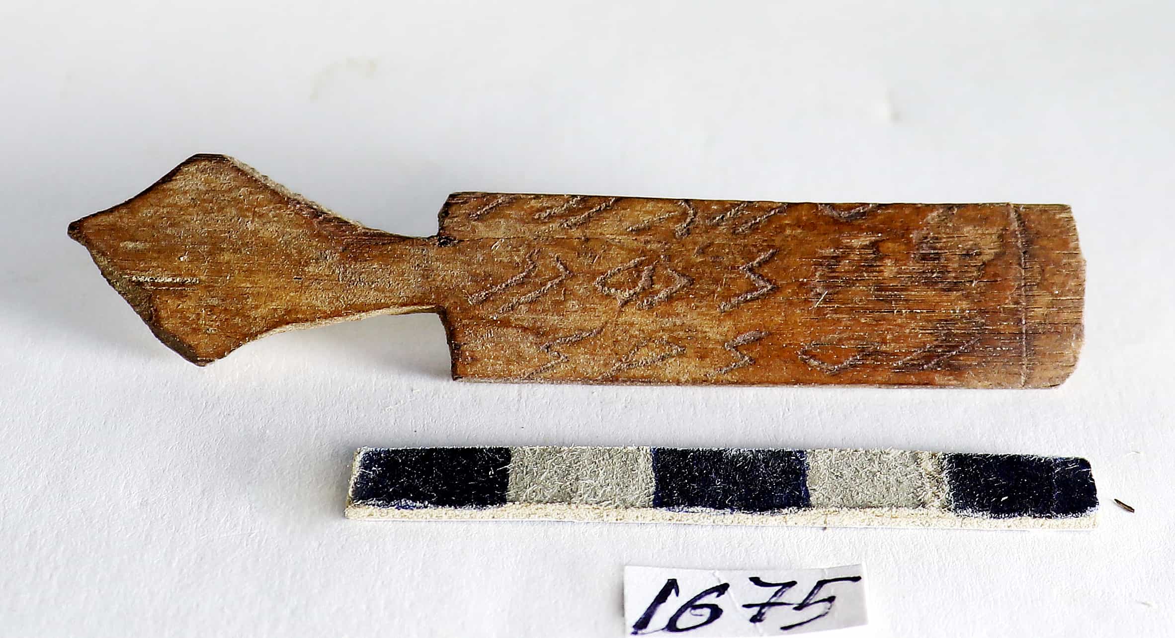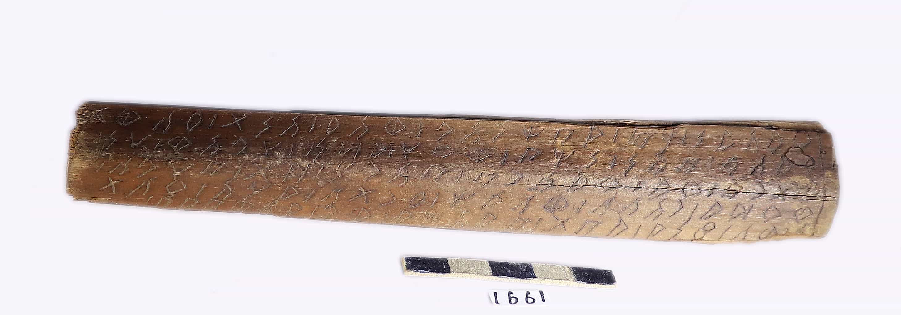 عود من عسب النخيل عليه اربعة اسطر بخط الزبور