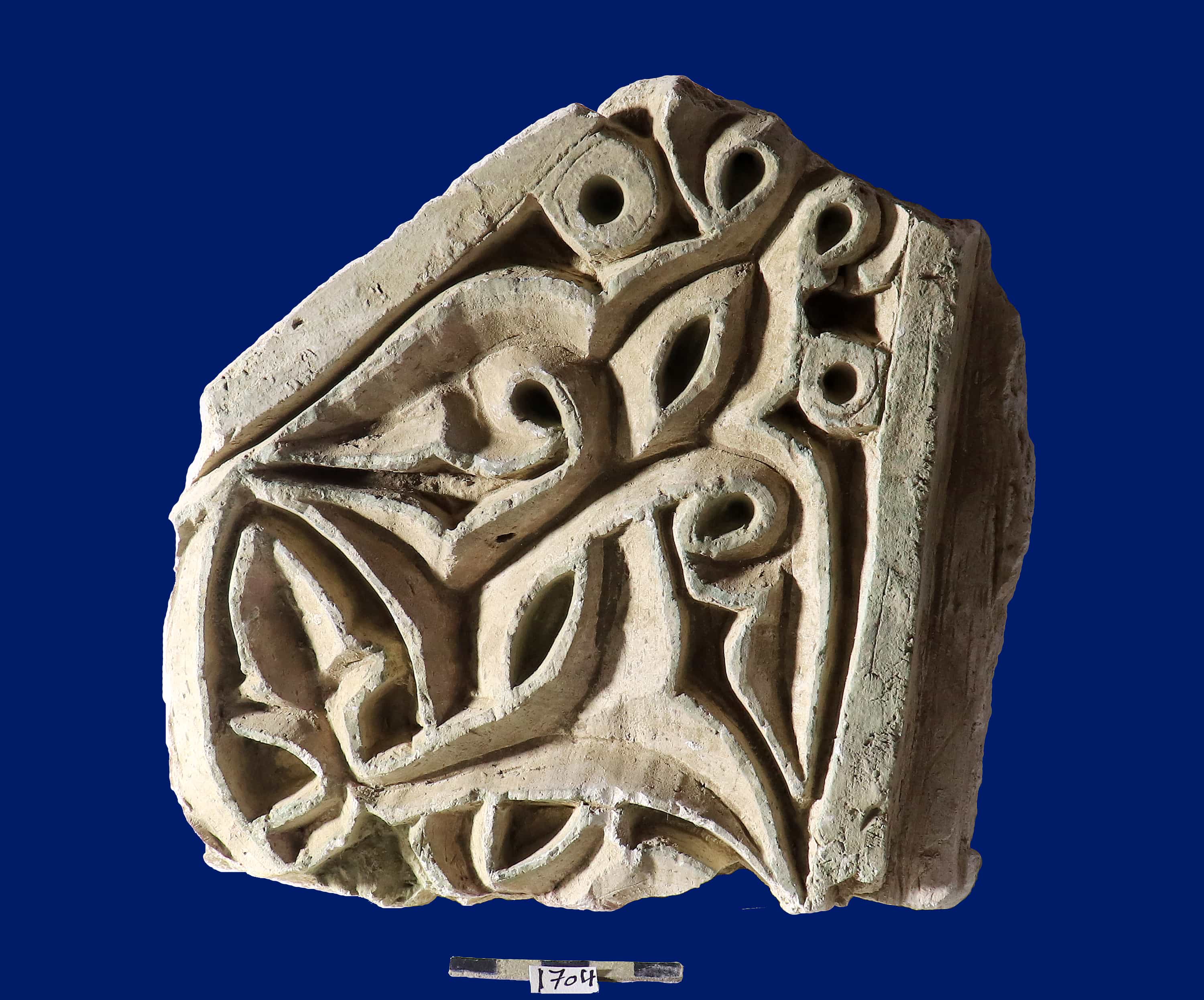 قطعة صغيرة غير مكتملة عليها زخرفه نباتيه أوراق