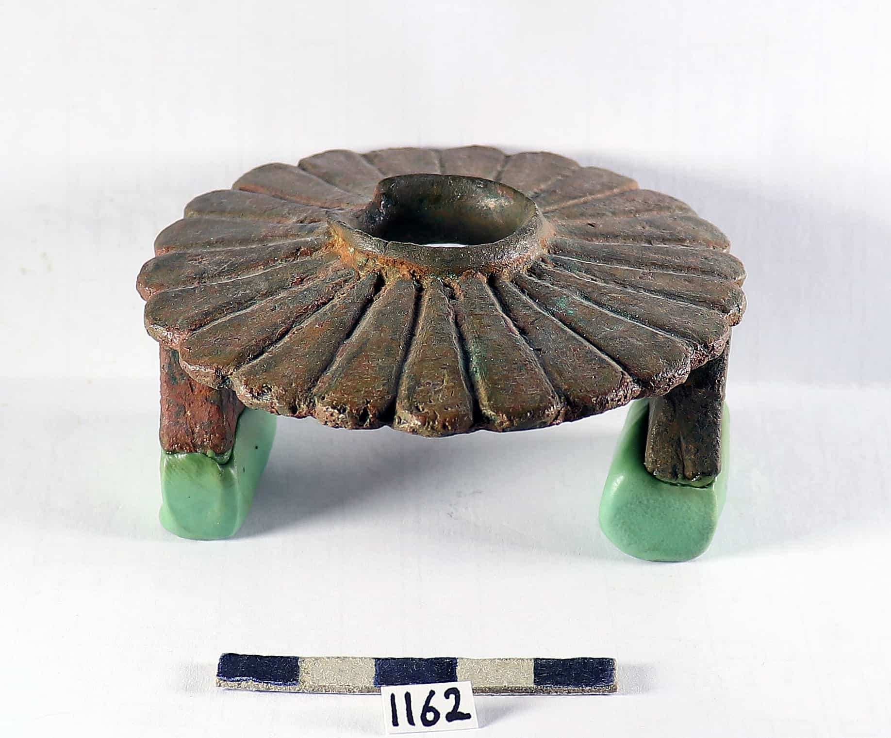قطعة مستديرة بشكل ورده وسطها ثقب نافذ لها قاعدتان مثلثه مفرغه