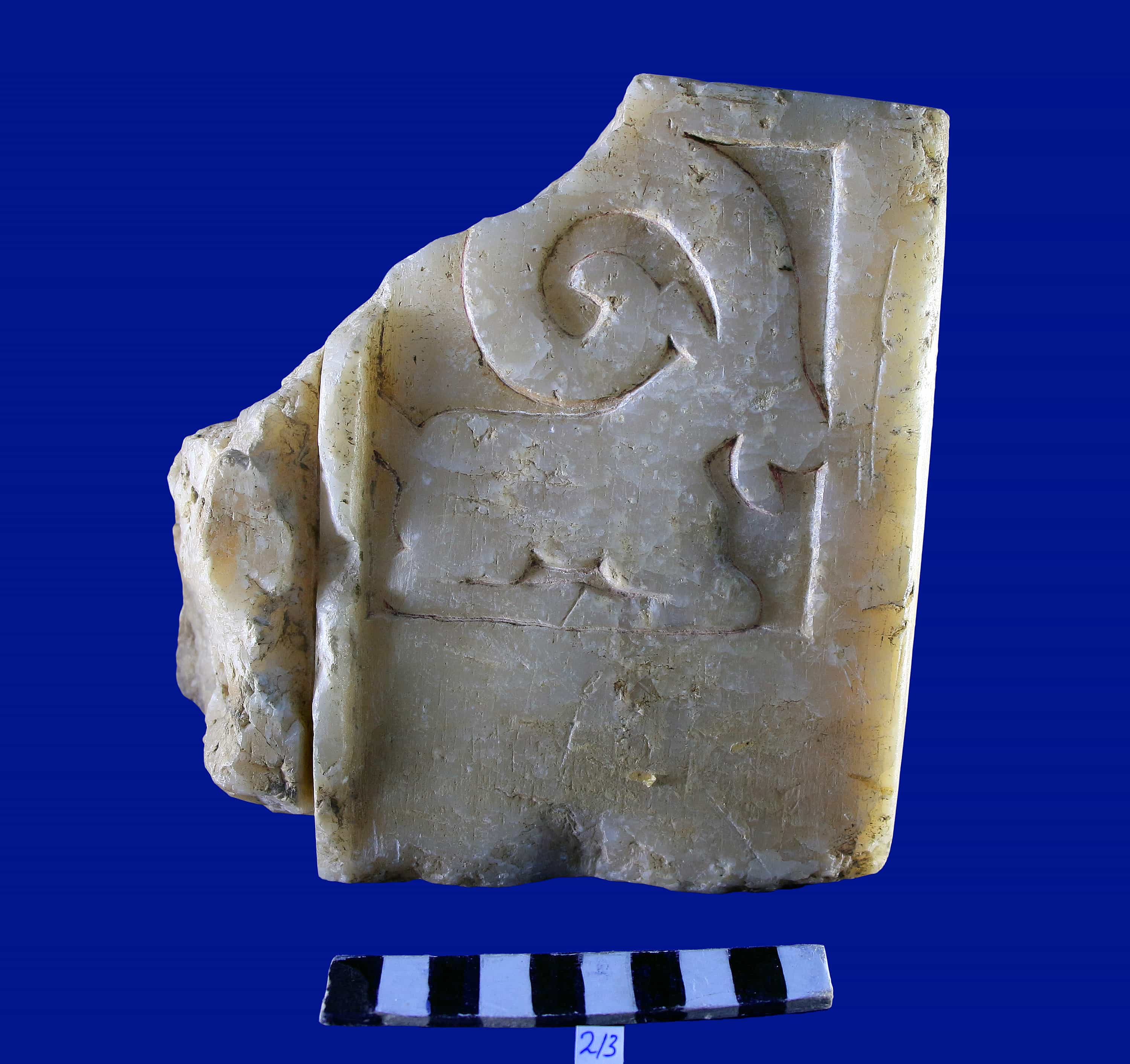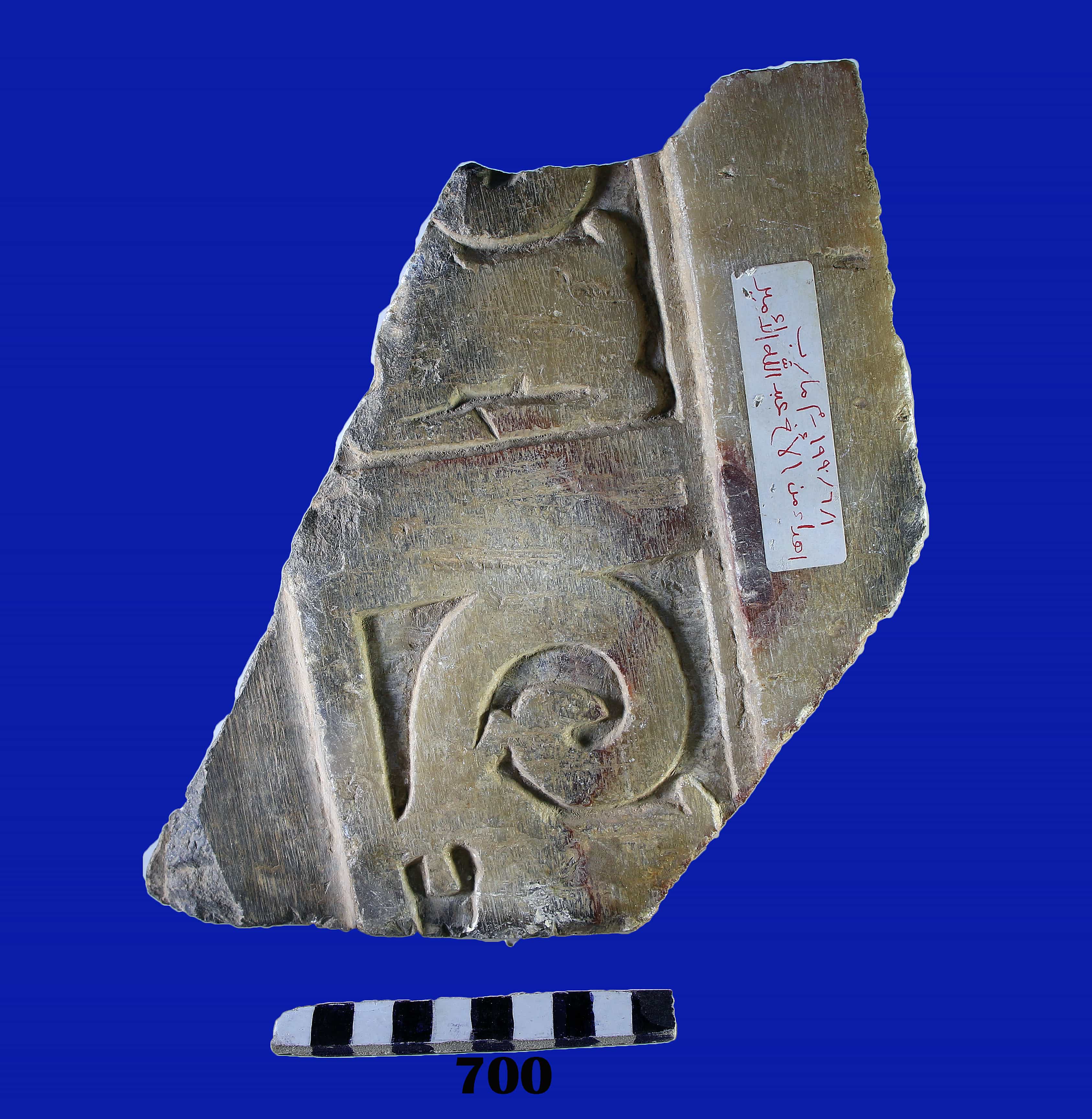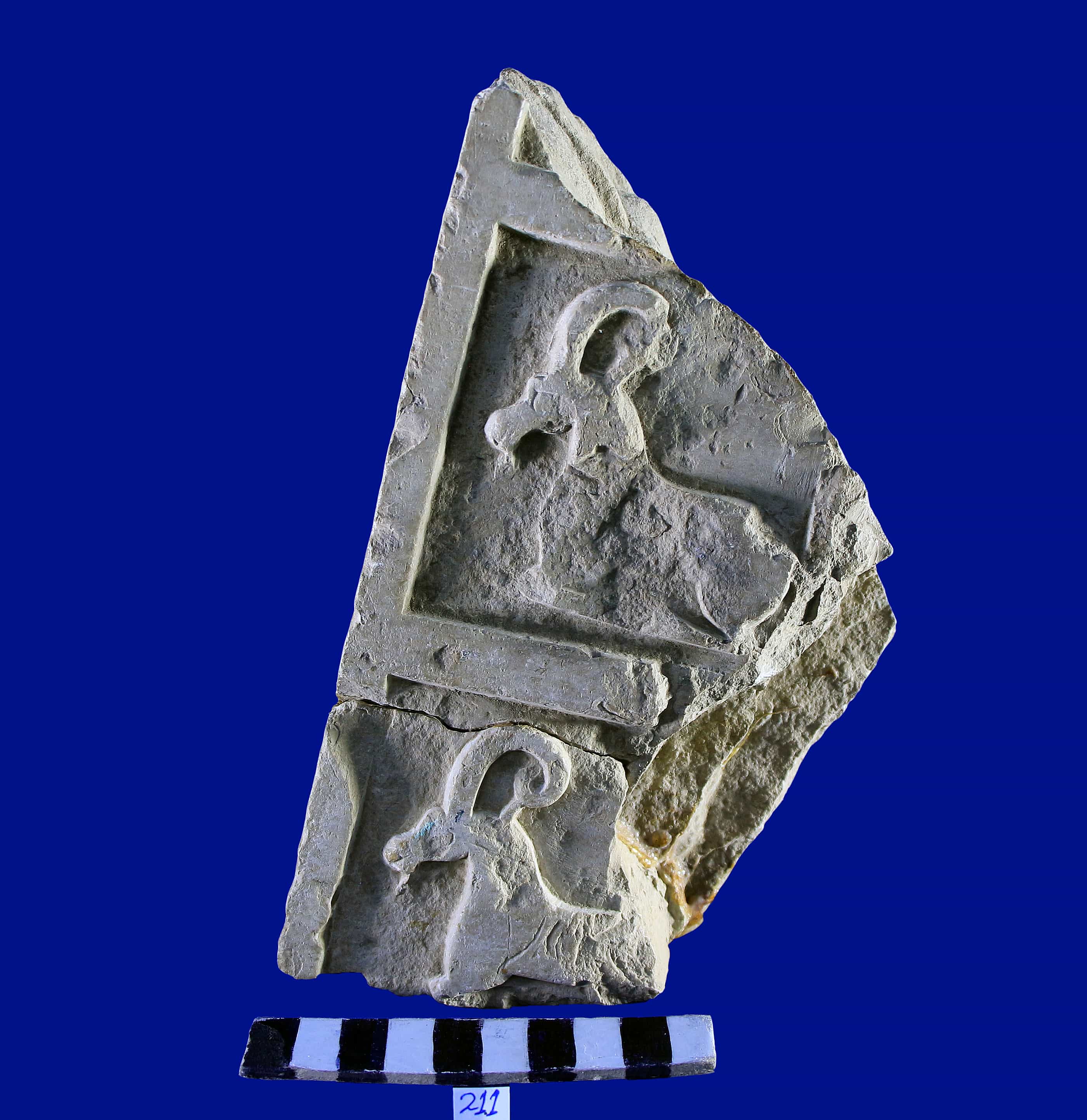 جزء من قطعة عليها نحت لوعل رابض