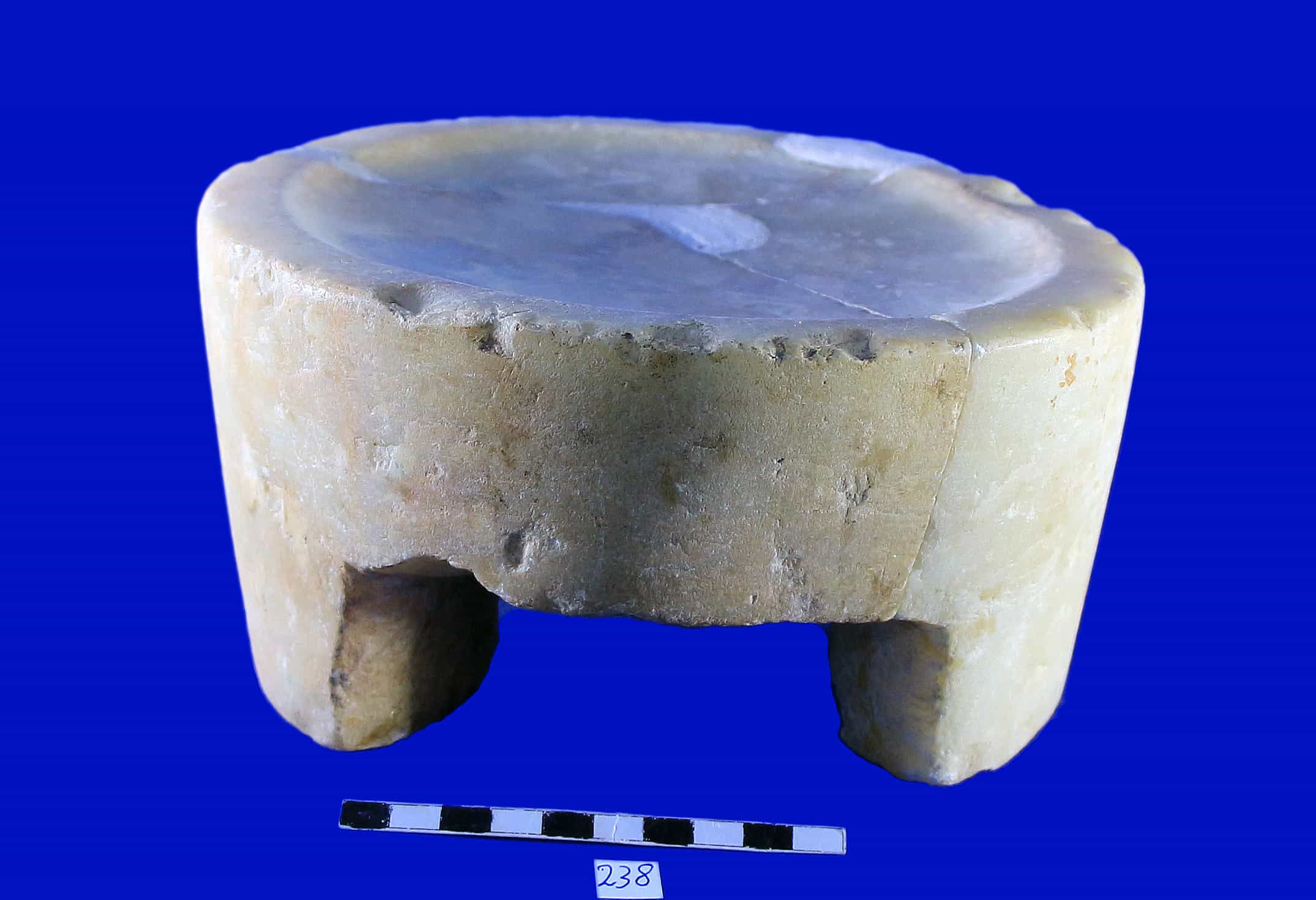 قطعة غير منتظمة الشكل عليها بقايا وعلين رابضين