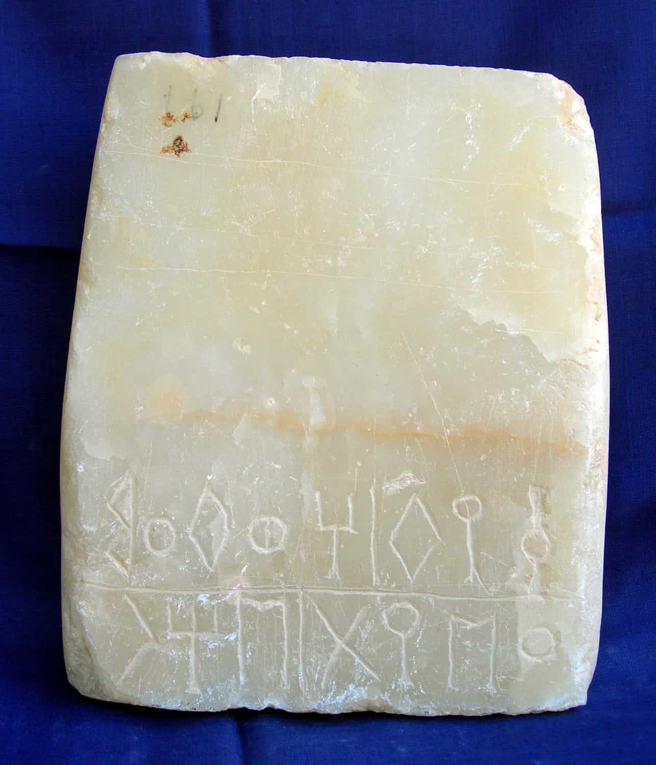 جزء من لوحة عليها ثلاثة اسطر بخط المسند