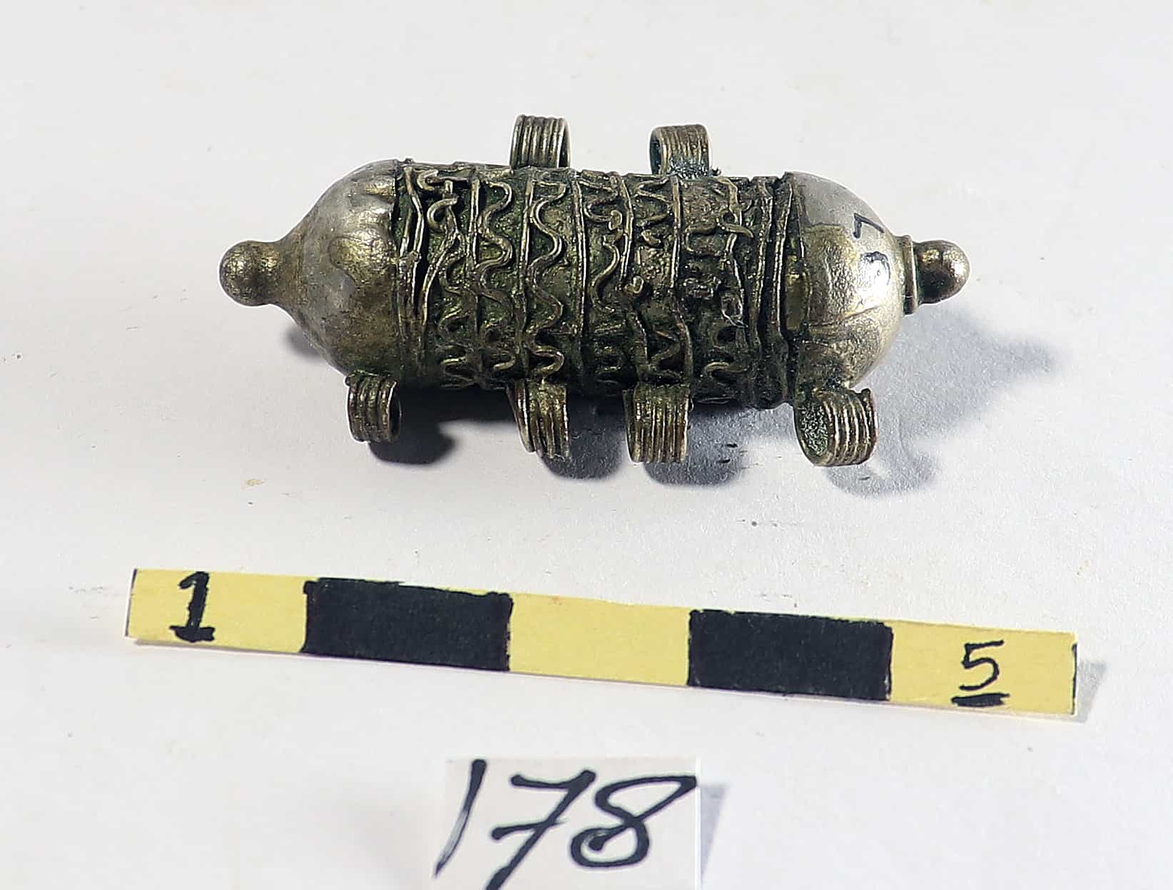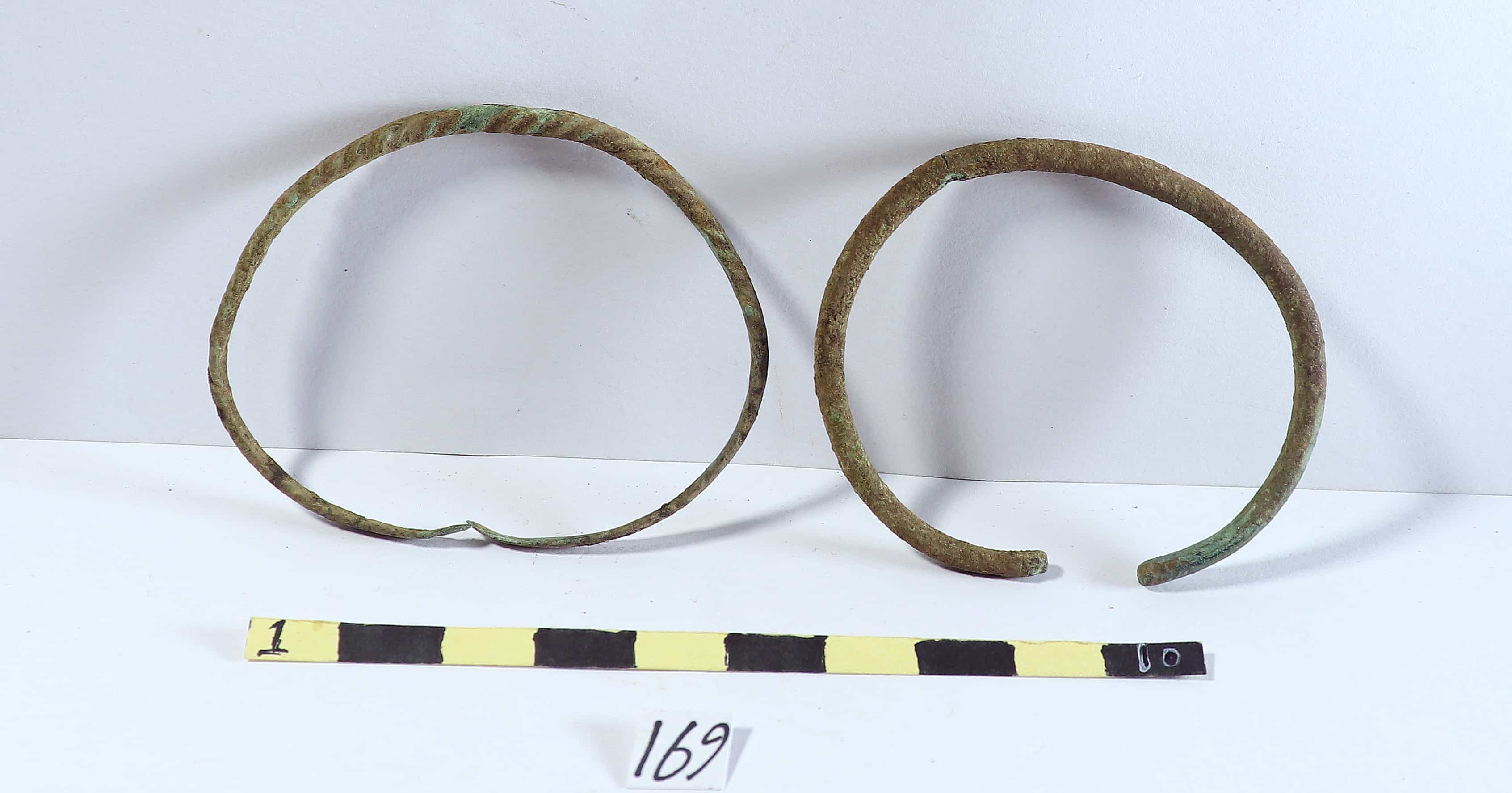 قطعتين من البروز عباره عن سوارين مختلفه من الاحجام والاشكال طرفيها غير ملتصقه على واحده منها زخرفه مبرومه