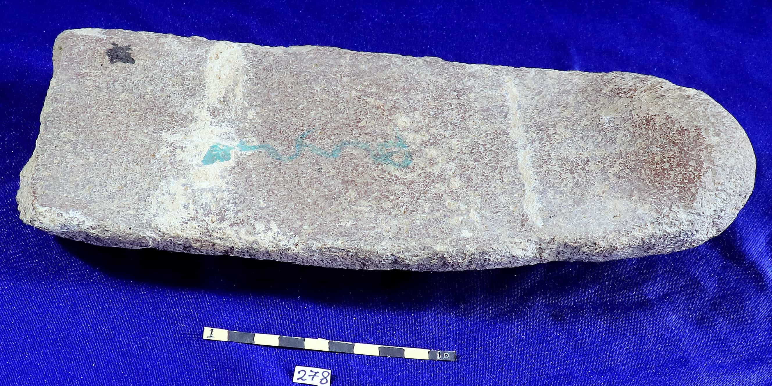 جزء من قطعه مستطيله الشكل على واجهتها بقايا سطر بخط المسند